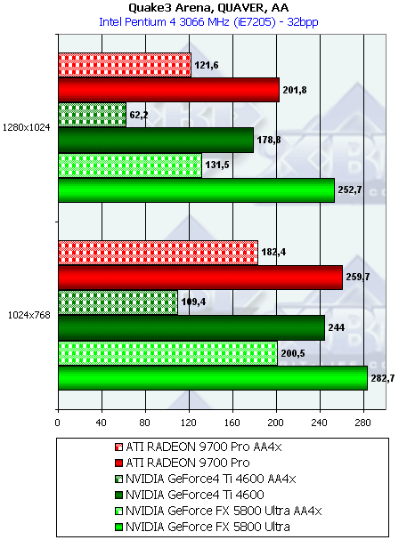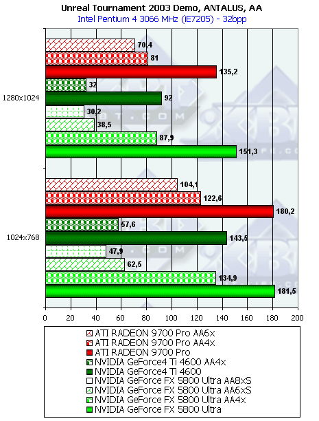 Провал с АА компенсировала быстрая анизотропия, поэтому в целом все благополучно для NV30. Хотя без