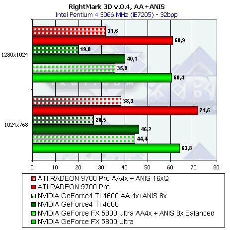 NV30 солидно выглядит и имеет прекрасные превосходства только под нагрузкой анизотропии и АА.