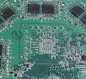 PCB достаточно сложна по разводке, однако слоев используется меньше — всего 8 плюс экранирование (в отличие от 12-слойной PCB у NV30):