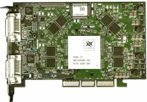 Как мы видим, карта очень большая по длине, и примерно равна PCB карты Voodoo5 5500. Расположение микросхем напоминает Matrox Parhelia: