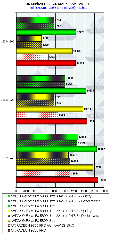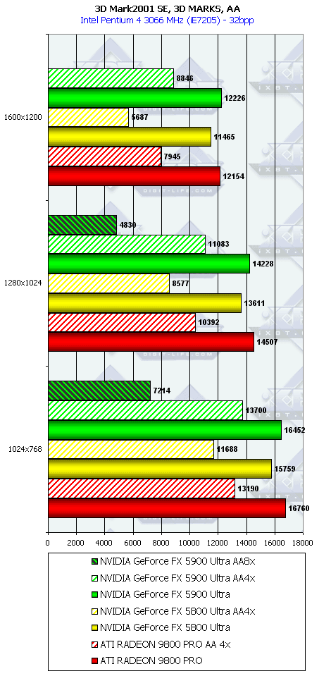 Подводя итоги тестирования в 3DMark2001SE, мы можем сказать следующее: