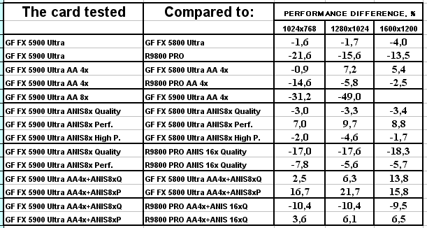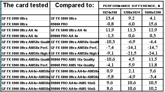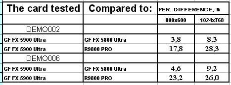 В этом тесте вроде все на своих местах, хоть проценты превосходства NV35 над соперником из стана ATI не столь велики.