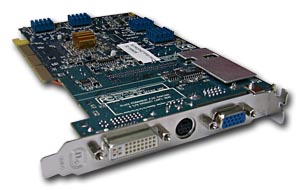 Карта снабжена интерфейсом AGP x4/x8, 128 МБ локальной памяти DDR SDRAM (восемь микросхем, размещенных на лицевой и оборотной сторонах PCB).
