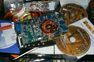 Да, первое, что бросается в глаза игра Elders Scrolls III: Morrowind (аж на двух дисках!). В очень редко встречающийся (может вообще, второй или третий) раз мы встречаем поставку с видеокартой весьма свежей и популярной игры, которая, к тому же, использует пусть всего лишь DirectX 8.1, но современные возможности новых карт. Затем мы видим традиционный уже PowerDVD XP плеер, диск с драйверами, утилитами, демками от ATI, руководство пользователя, переходники. Отличный комплект! Hercules браво!