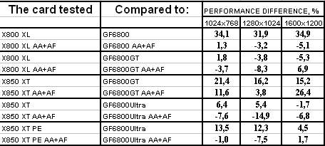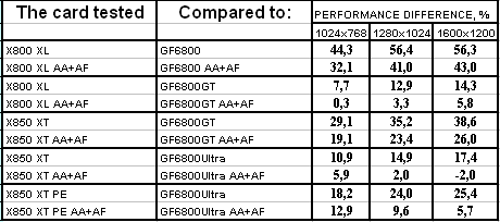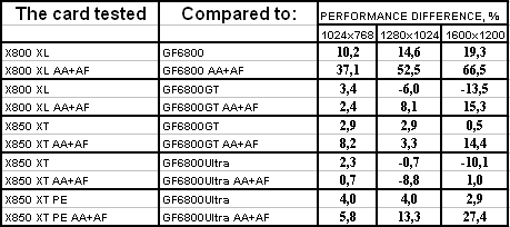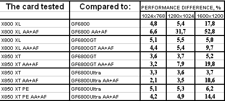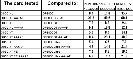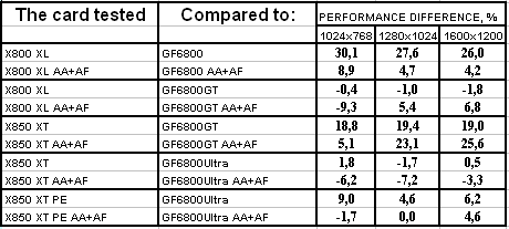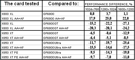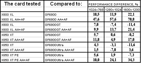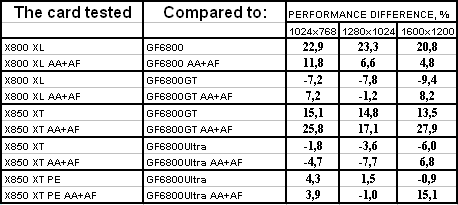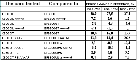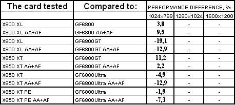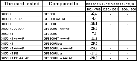 В целом X800 XL выступил неплохо, и, несмотря на некоторые поражения от 6800GT, все же можно сказать, что паритет он выдержал.
