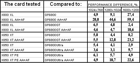А вот у X850 XT/XT PE с соперниками получилось примерное равенство сил.
