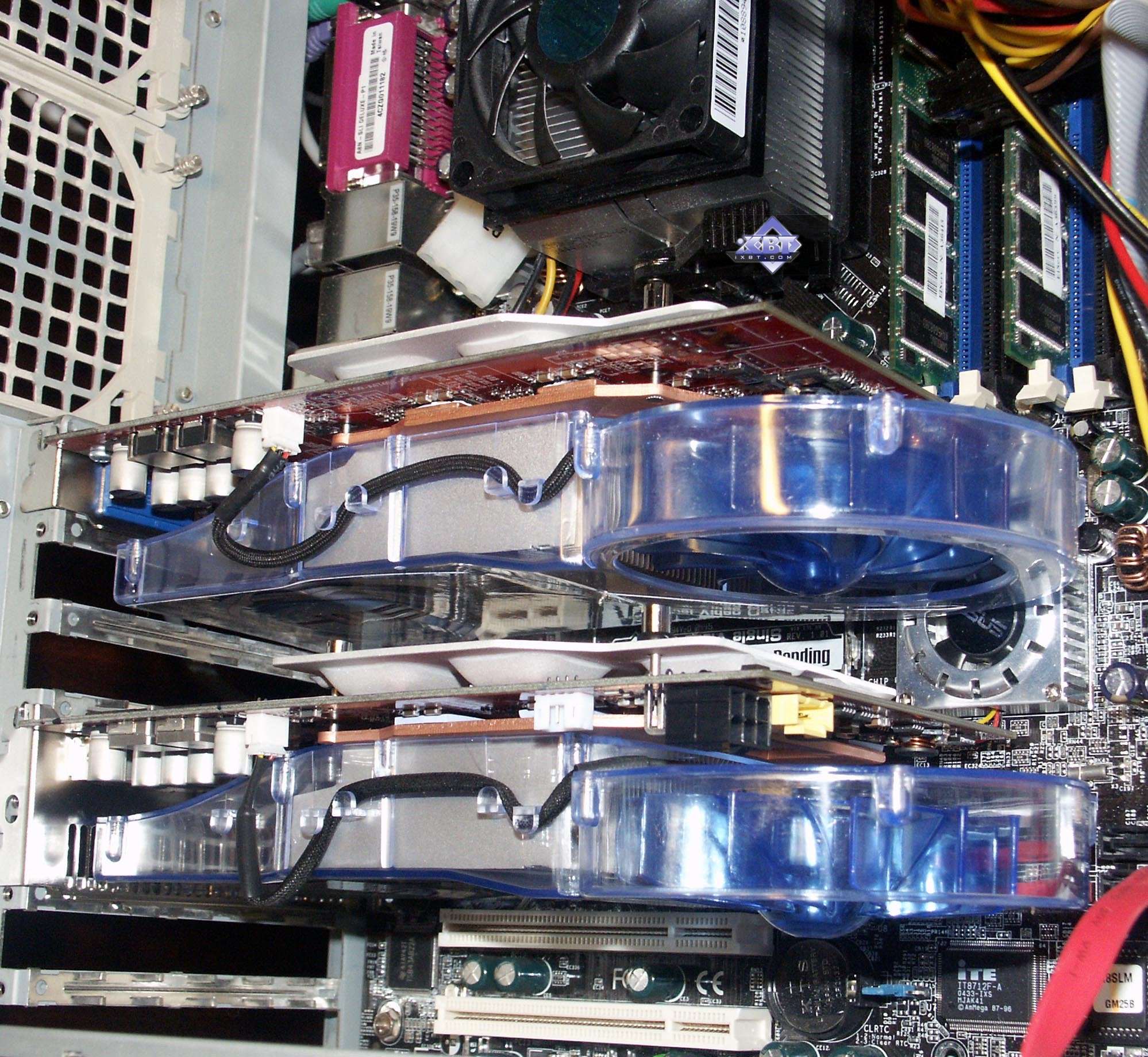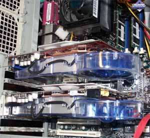 Шутки ради я поставил две карты от HIS в стенд на базе nForce4 SLI. Смотрятся очень красиво. Явно не хватает адаптера для их соединения в нечто подобное SLI :-). Это не намек. Просто ради любопытства. :)
