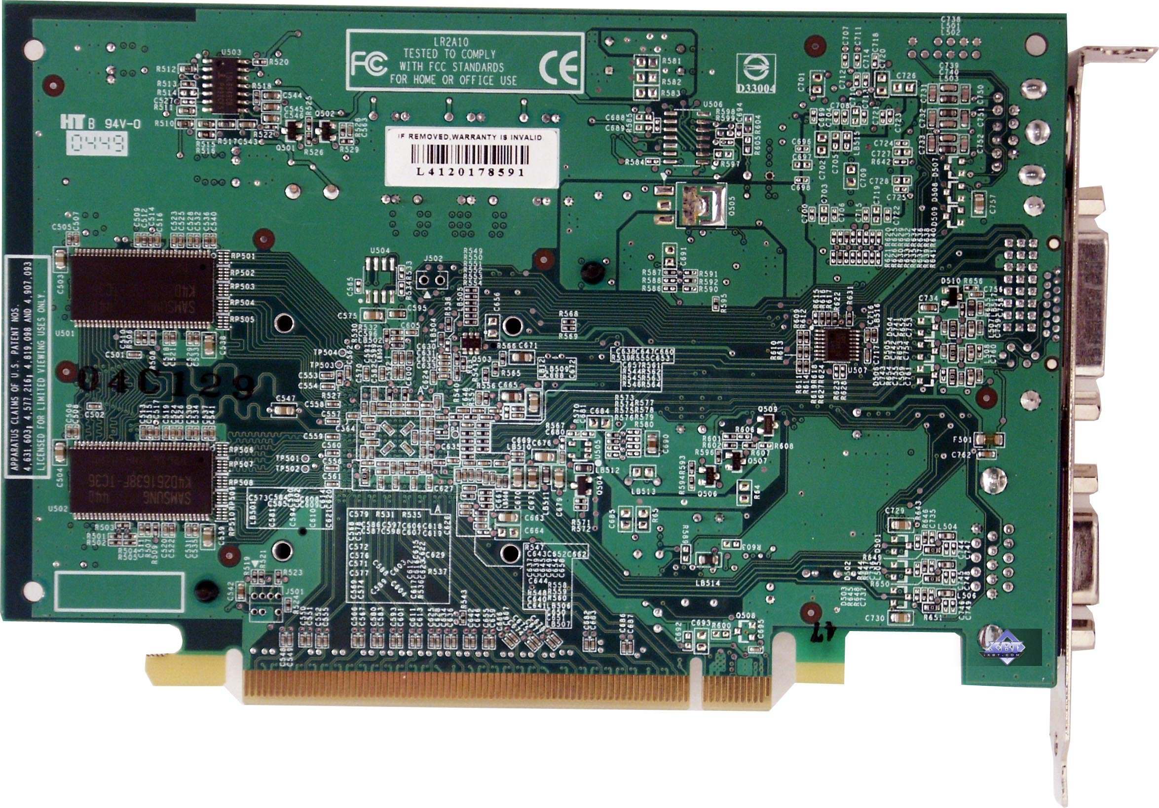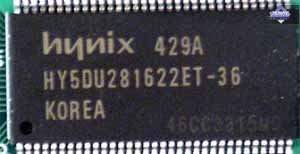 | Карта имеет 128 МБ памяти DDR SDRAM, размещенной в восьми микросхемах на лицевой и оборотной сторонах PCB. Микросхемы памяти Hynix. Время выборки у микросхем памяти 3.6 ns, что соответствует частоте работы 275 (550) МГц. | ![]() |