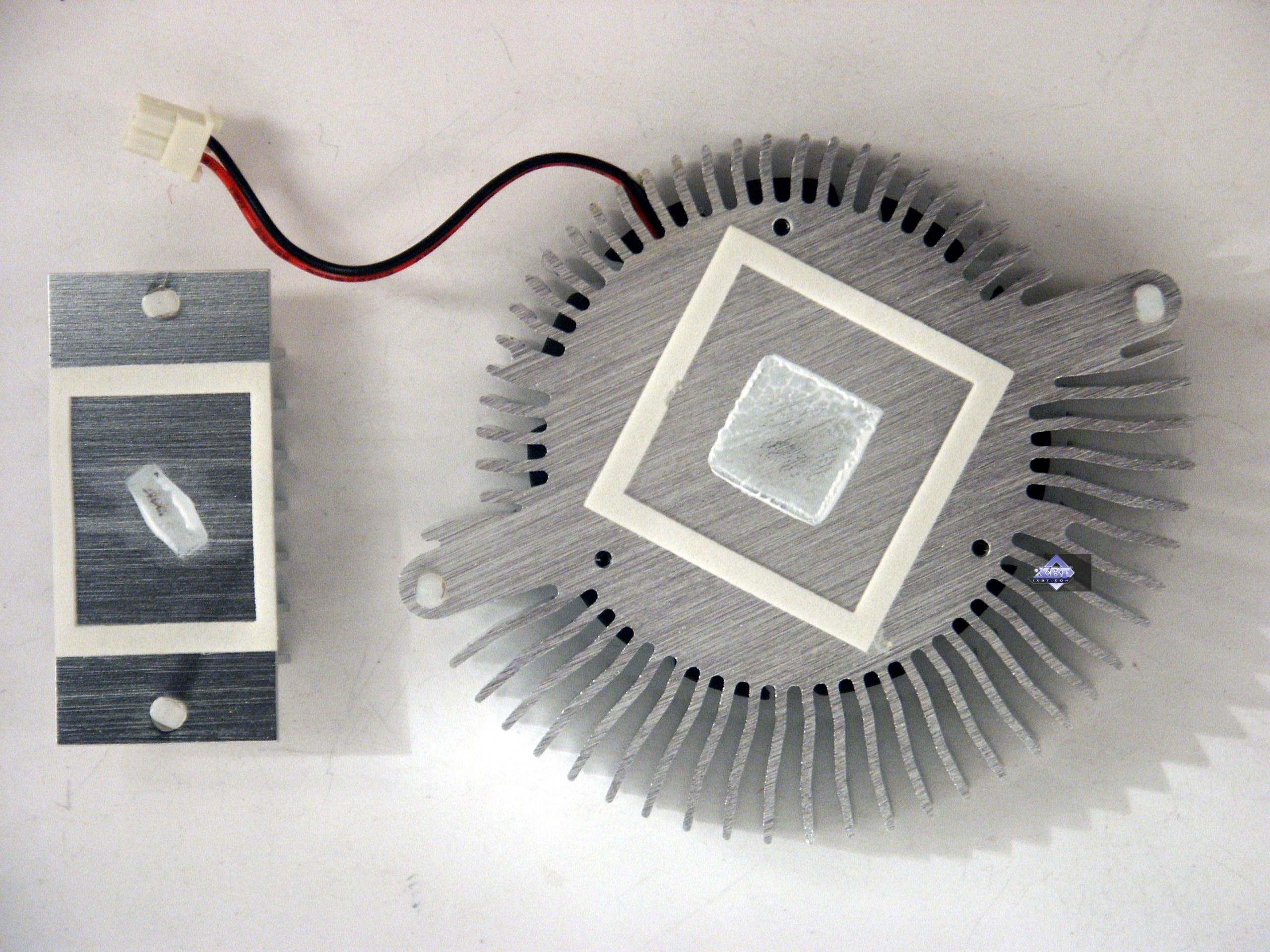 Простой прямоугольный пластинчатый радиатор из алюминиевого сплава. Вентилятора нет, да он и не нужен для такого процессора. | ![]() |