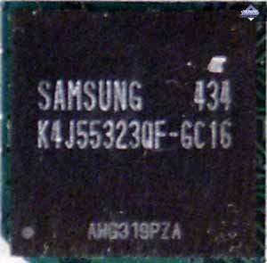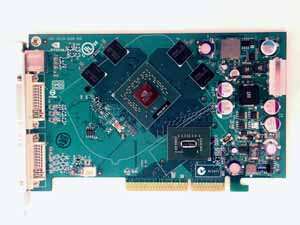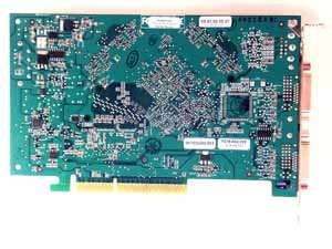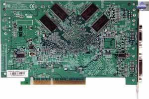 | Карта имеет 64 МБ памяти DDR SDRAM, размещенной в четырех микросхемах на лицевой и оборотной сторонах PCB (вместе с системным ОЗУ суммарный объем памяти — до 256 мегабайт) Микросхемы памяти Samsung. Время выборки у микросхем памяти 3.6 ns, что соответствует частоте работы 275 (550) МГц. | ![]() |
