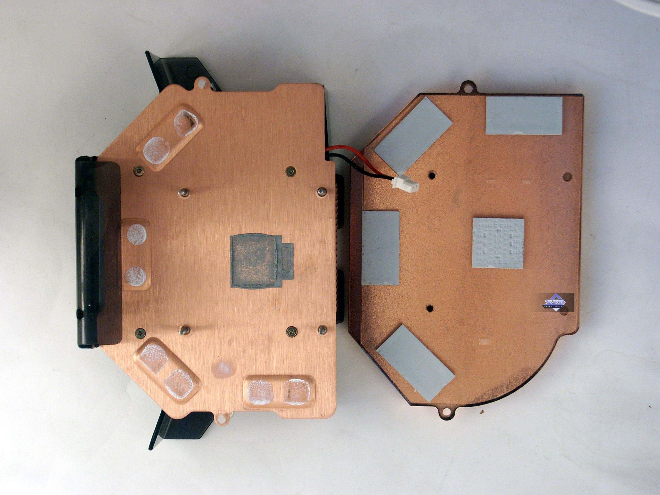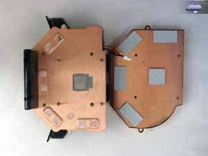 Система охлаждения состоит из двух частей: большого кулера для GPU и небольшого радиатора для охлаждения HSI. Кулер для графического процессора представляет собой радиатор округлой формы с пластинами по периметру, способствующими прохождению воздуха от вентилятора, установленного в центре. Шума от последнего нет, поскольку он работает на малых оборотах. Радиатор для HSI явно маловат, поскольку нагрев весьма велик. | ![]() |