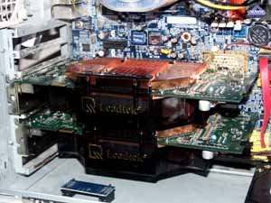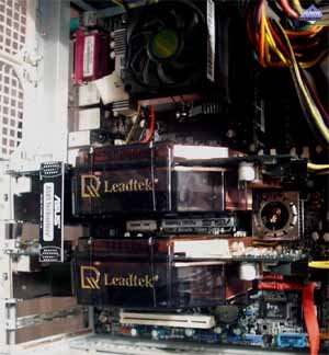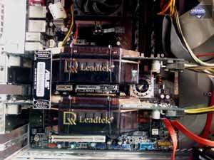 Видеокарты от Leadtek на базе 6800 Ultra имеют очень внушительную систему охлаждения, и поэтому при установке они не смогут встать в обычные системные платы с двумя соответствующими слотами: