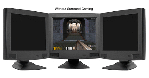Ожидается, что на выставке E3 в этом году будет демонстрироваться много разных игр в широком (180 градусов охвата зрения) исполнении, сразу на трех мониторах. Как вы уже догадались на карте, на базе Parhelia-512. В комплекте программного обеспечения идет специальная утилита, позволяющая играть во многие популярные игры в широком дву- или трехэкранном режиме.