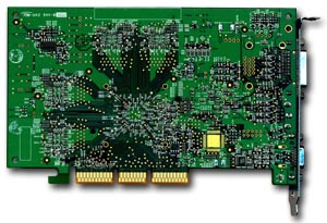 А вот тут уже отличия очевидны. Во-первых, уже упомянутая выше комплектация новой карты микросхемами в упаковке BGA, во-вторых, — новый дизайн, при котором все микросхемы памяти расположены на лицевой стороне, в-третьих, наличие у карты двух "голов", то есть полноценная поддержка nView с возможностью вывода картинки на два монитора и/или телевизор. Ну и, как вы смогли уже убедиться выше, частоты работы нового MX 440 значительно выше, чем у предшественника (имеется в виду частота работы памяти).