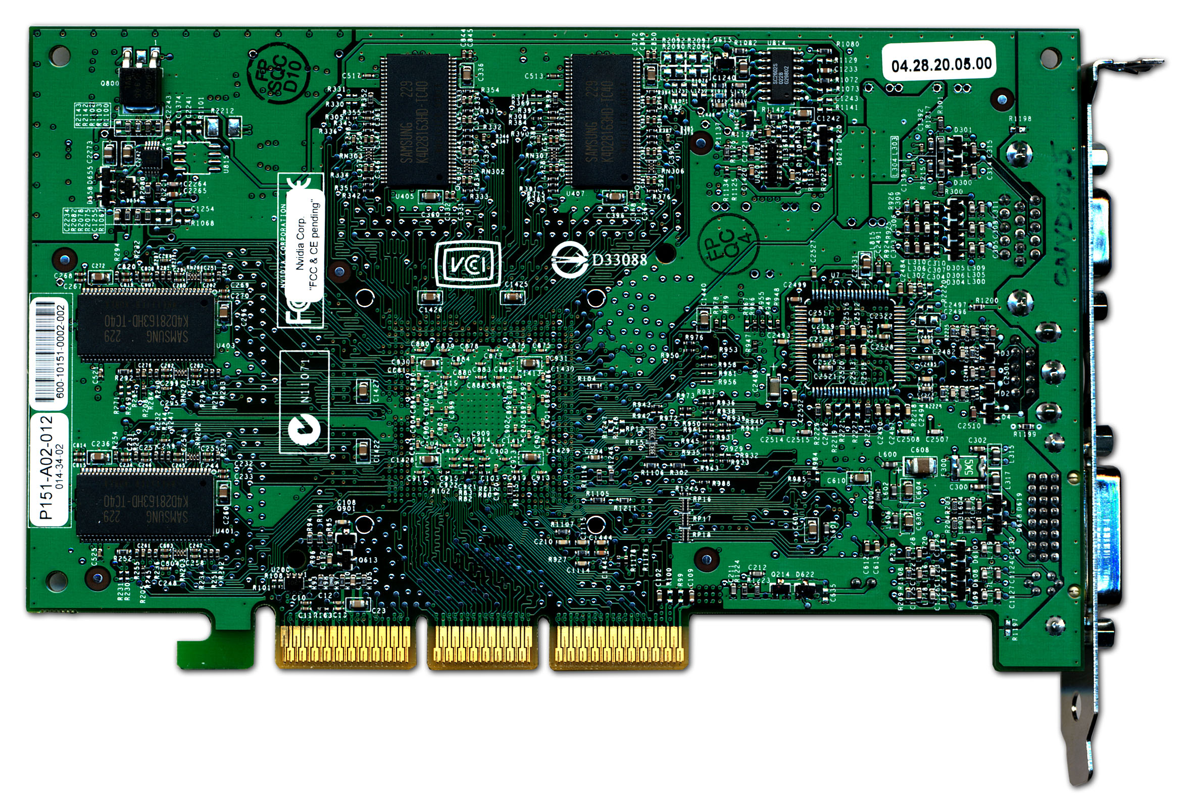 Карты снабжены интерфейсом AGP x2/x4/x8, 128 МБ локальной памяти DDR SDRAM (восемь микросхем, размещенных на лицевой и оборотной сторонах PCB) — у GeForce4 Ti 4200 with AGP8x (NV28) и 64 МБ локальной памяти DDR SDRAM (четыре микросхемы, размещенные на лицевой стороне PCB) — у GeForce4 MX 440 with AGP8x (NV18) .