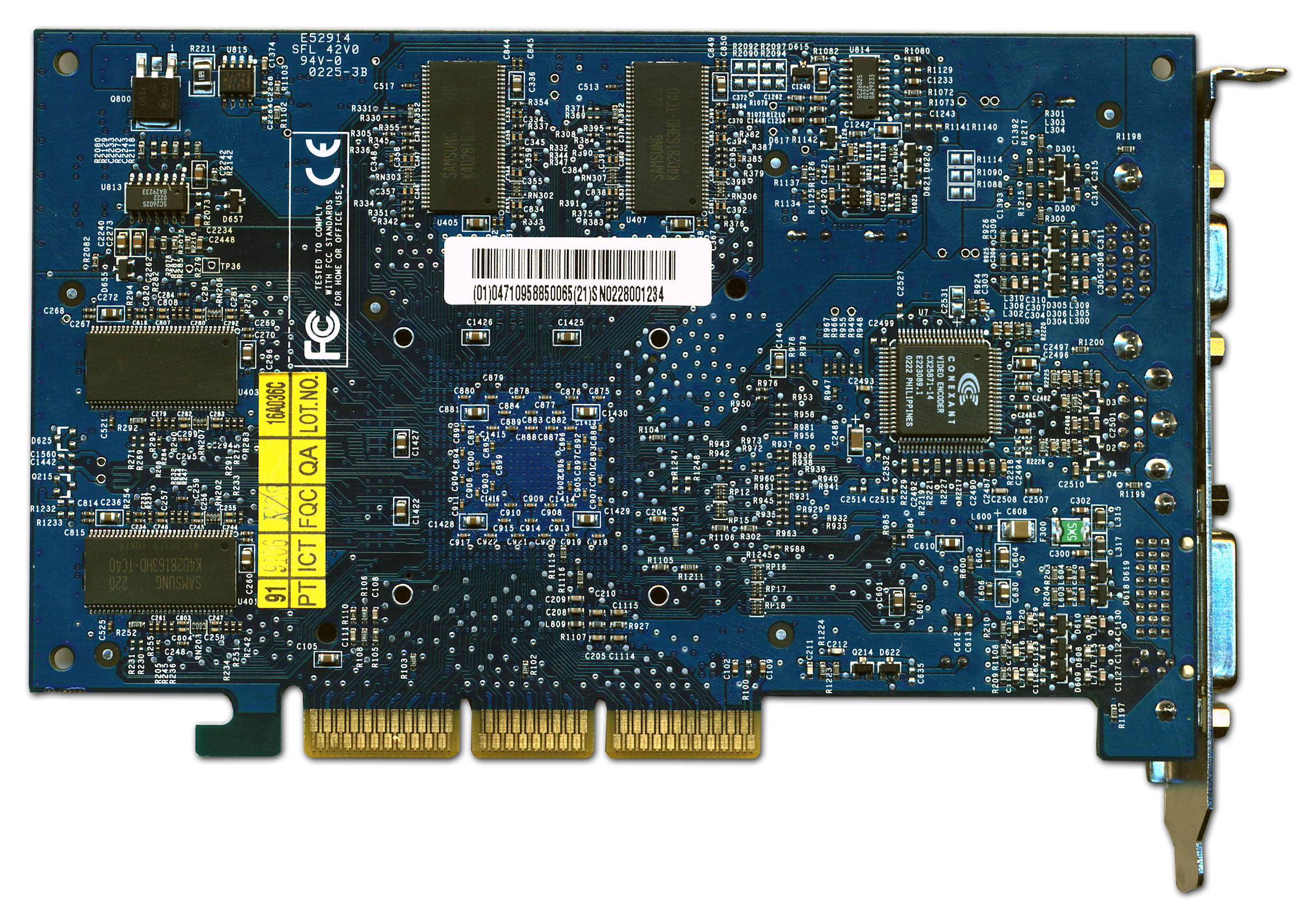 Маркировка на чипе отличается от той, что мы могли многократно видеть ранее, только суффиксом "8х", что как раз и означает поддержку AGP 8x.