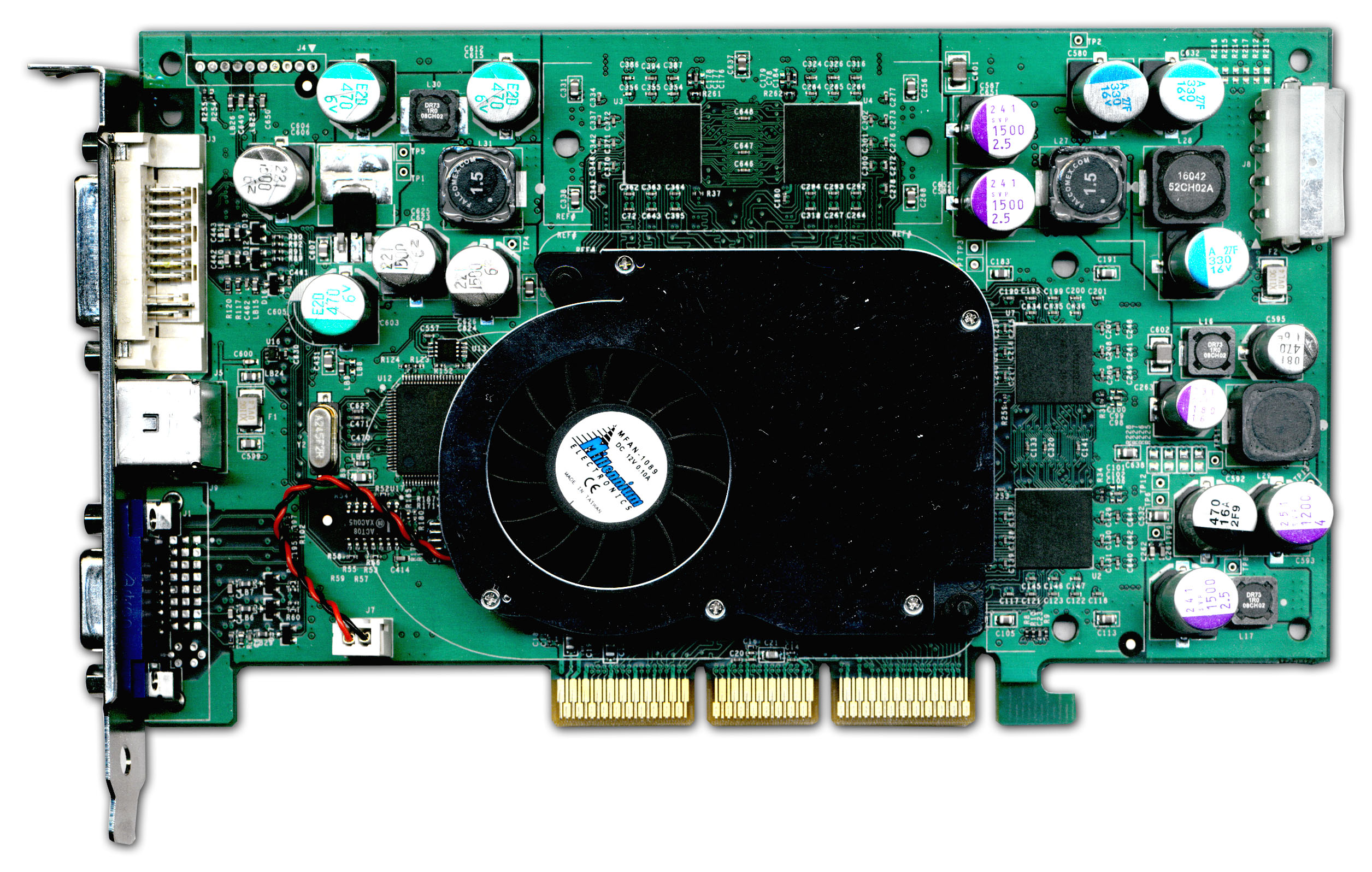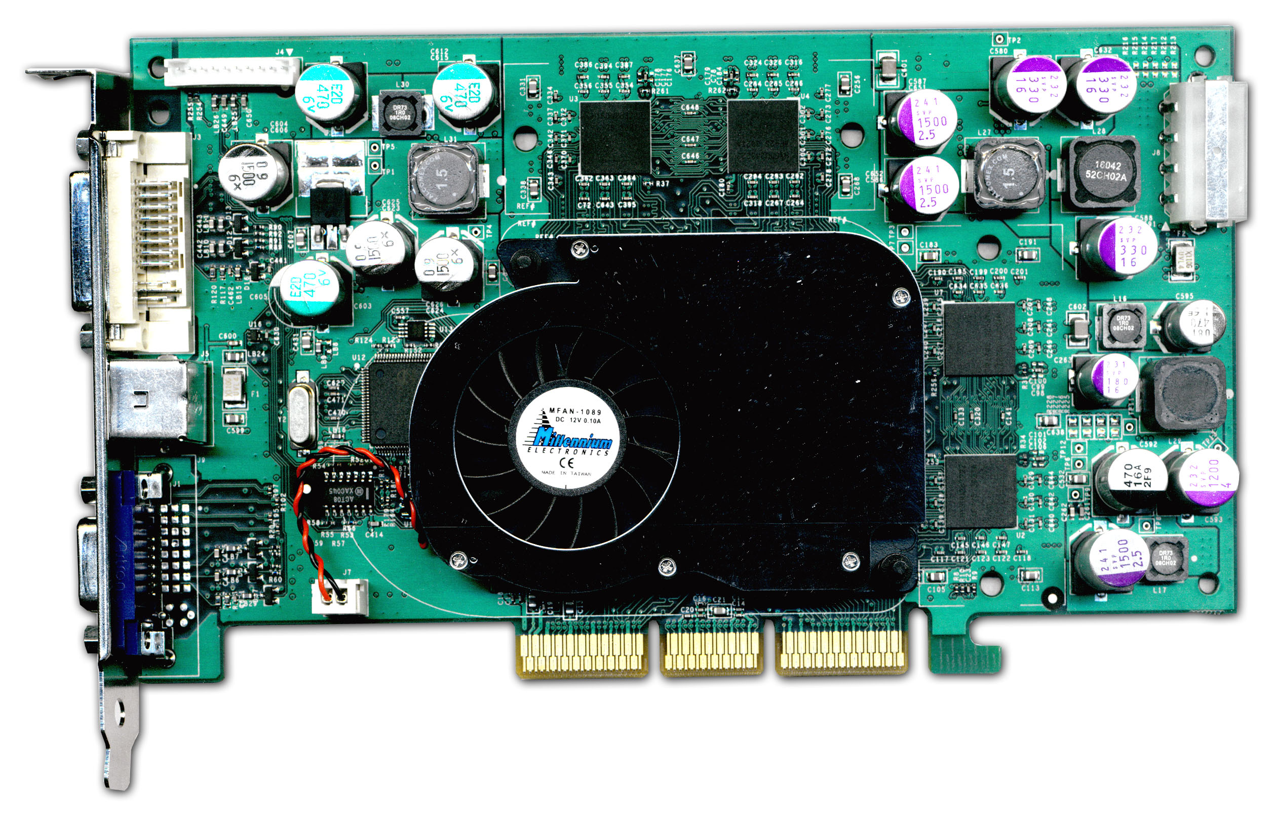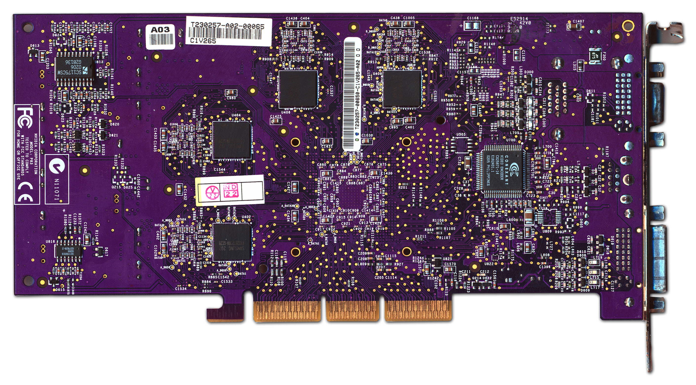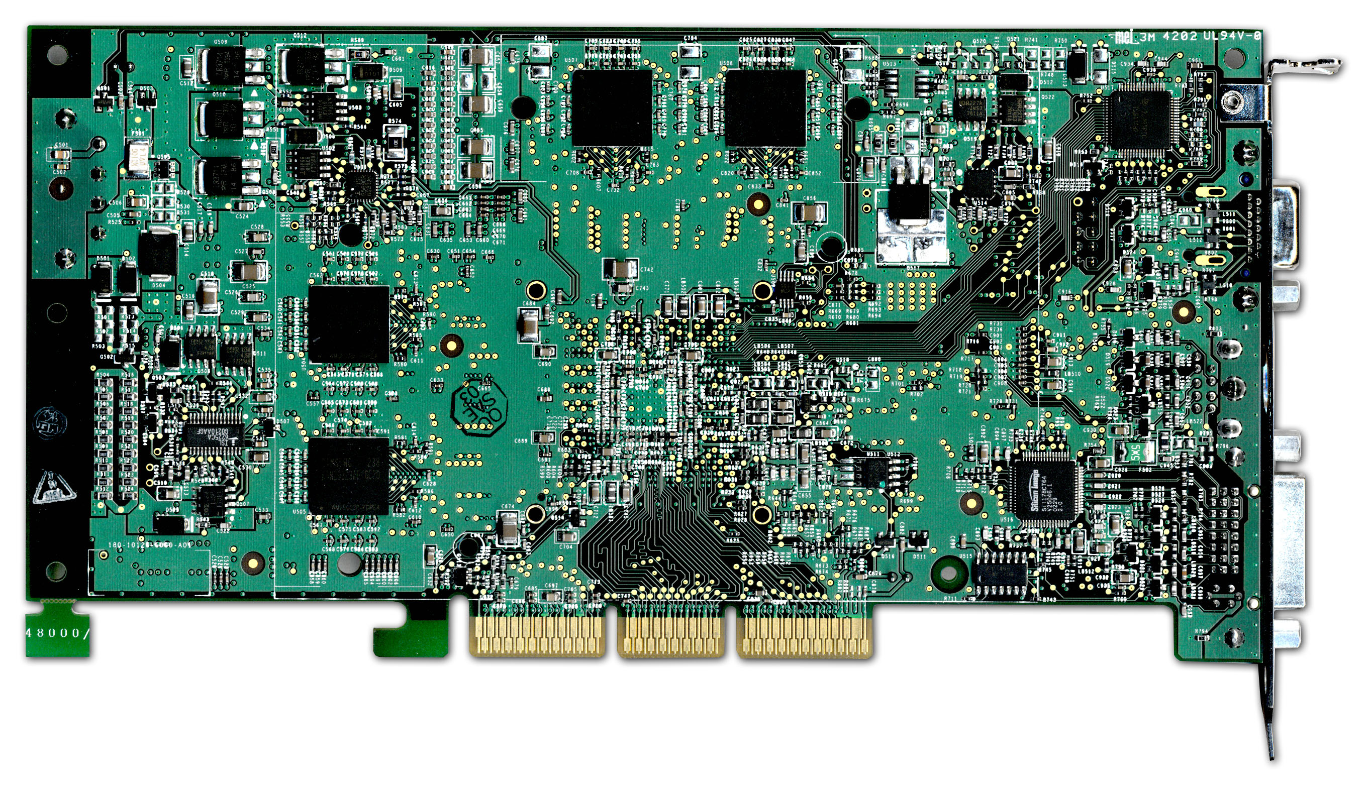 Карты снабжены интерфейсом AGP х2/x4/x8, 128 МБ локальной памяти DDR SDRAM (восемь микросхем, размещенных на лицевой и оборотной сторонах PCB).