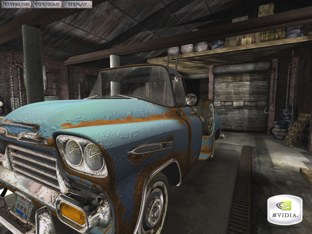 - DirectX 9.0 тест; примерно 780 000 полигонов в сцене, под текстуры используется 50 мегабайт видеопамяти, 54 мегабайт для буферов под вершины и 9 мегабайт для индексов.