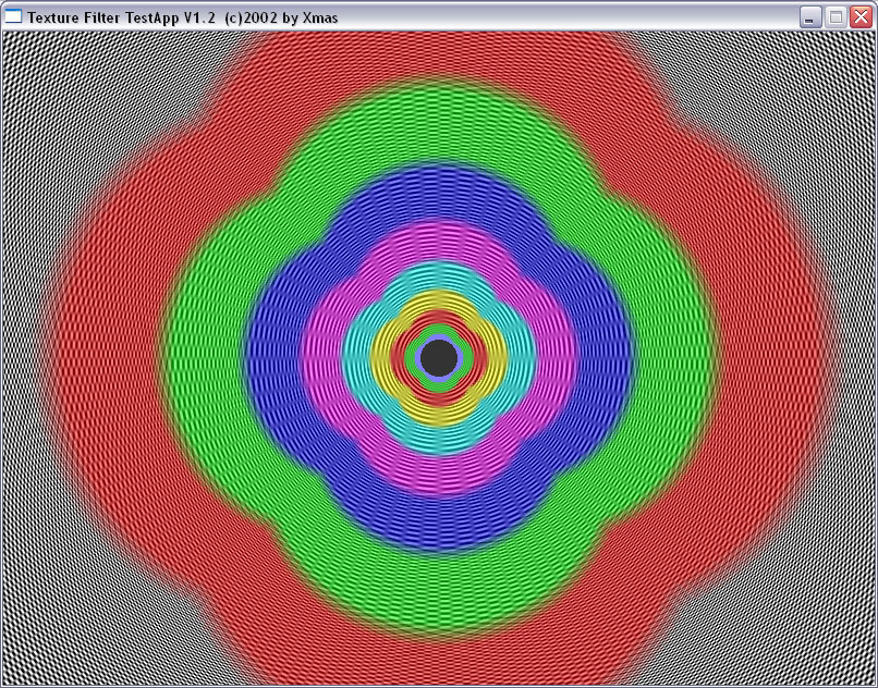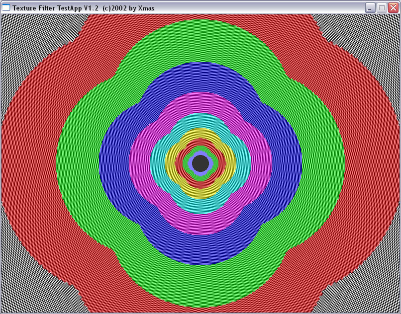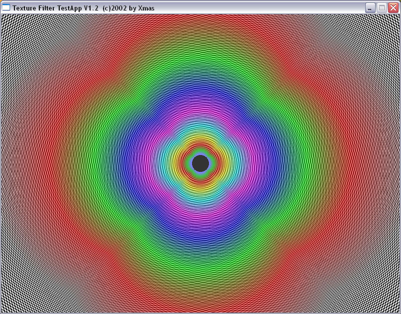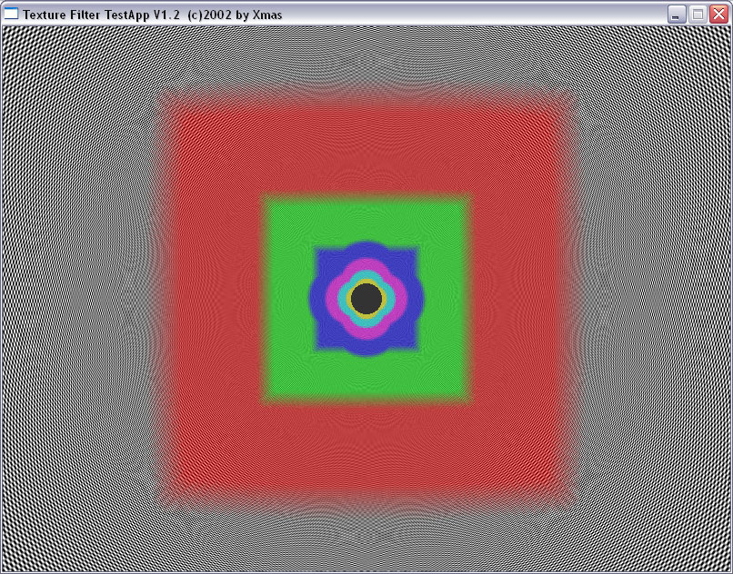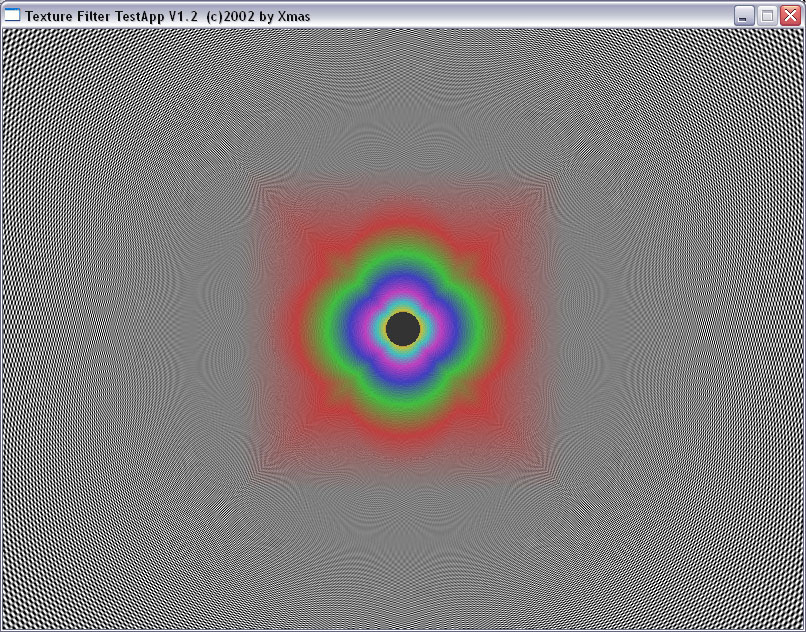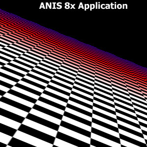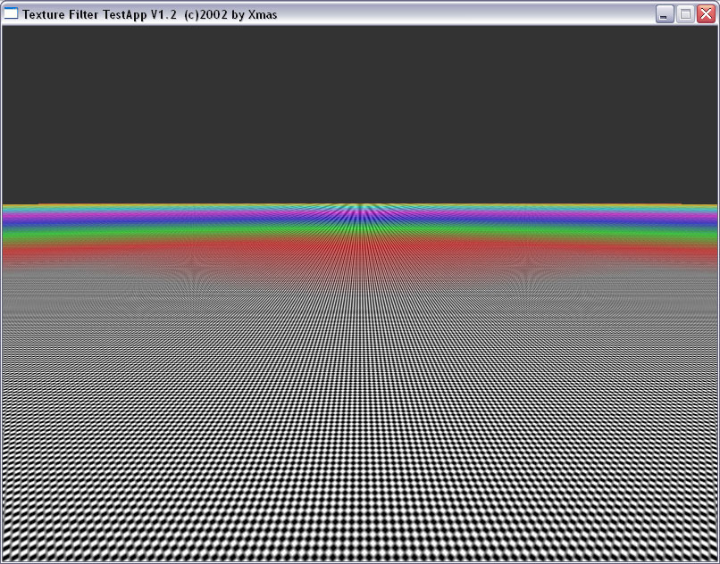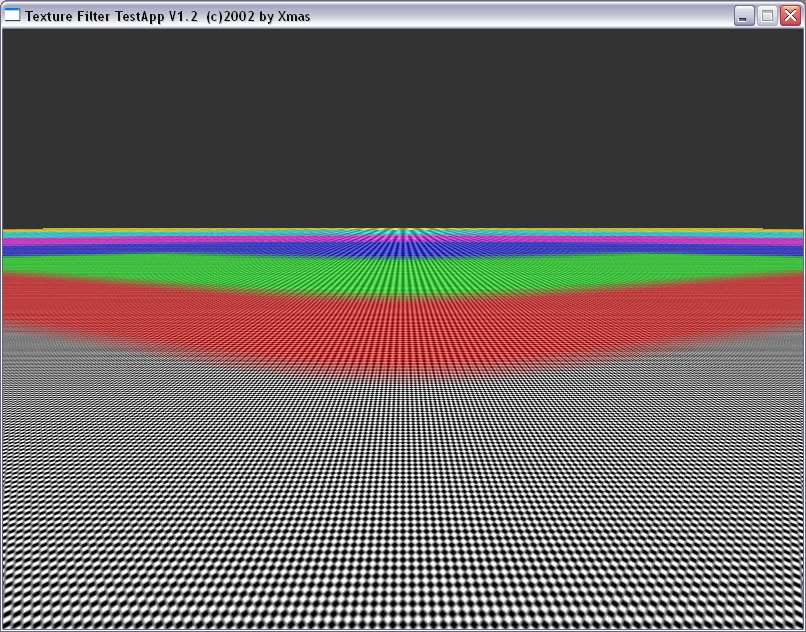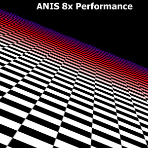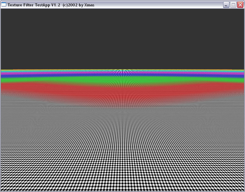 Мы прекрасно видим, что между подвидами анизотропии есть разница не только в скорости, но и в качестве. Идет некая манипуляция MIP-mapping-ом, заодно и трилинейной фильтрацией. Это четко видно на примере XMAS — программы для тестирования анизотропии в OpenGL.