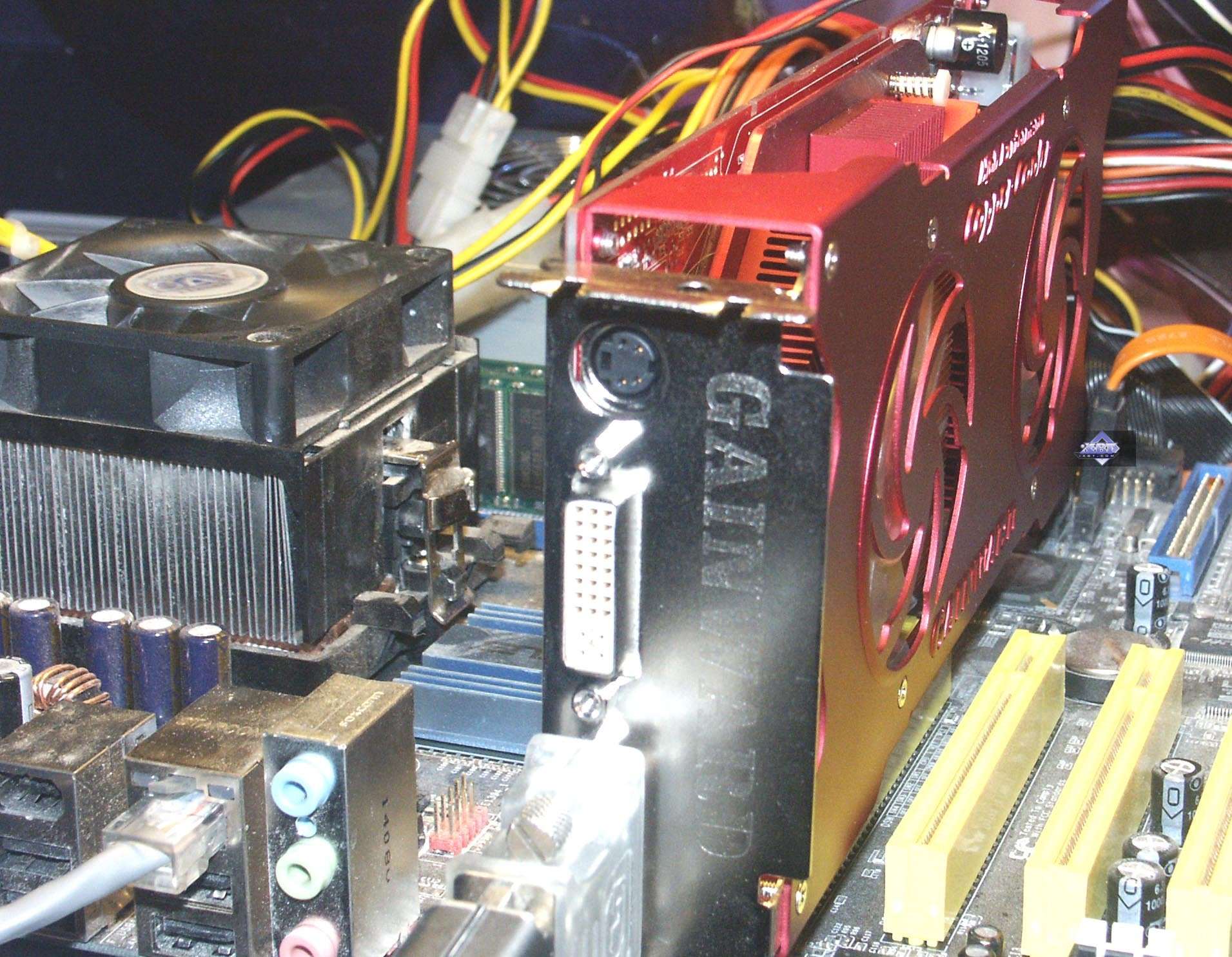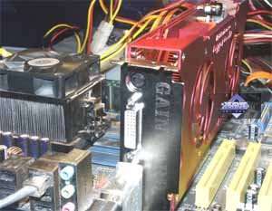 Под кулером, как и следовало ожидать, находится герой дня, — процессор GeForce 6800GT.