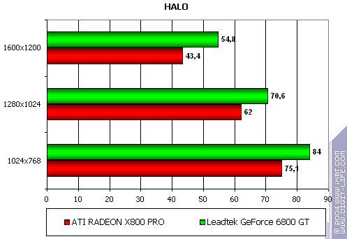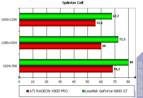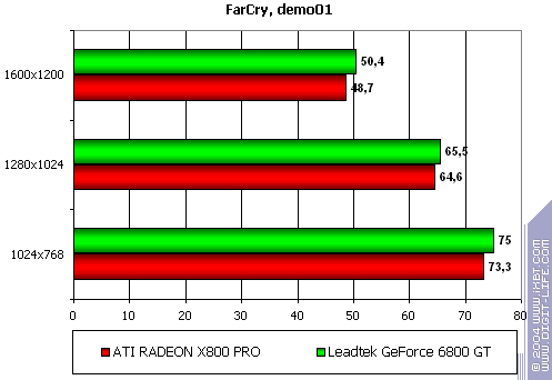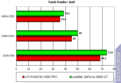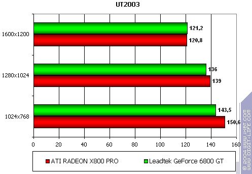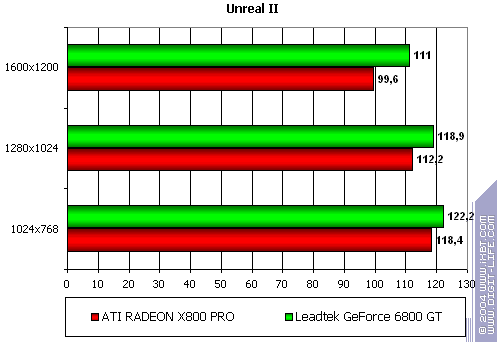 - Leadtek WinFast A400 GT TDH против ATI RADEON X800 PRO с учетом того, что в подобные игры на мощных ускорителях мало кто будет играть без АА или анизотропии, общий итог: победа за X800 PRO.
