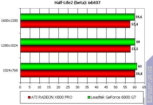 - Half-Life2 (Valve/Sierra) DirectX 9.0, demo (ixbt07. Тестирование проводилось при включенной анизотропной фильтрации, а также в тяжелом режиме с АА и анизотропией.
