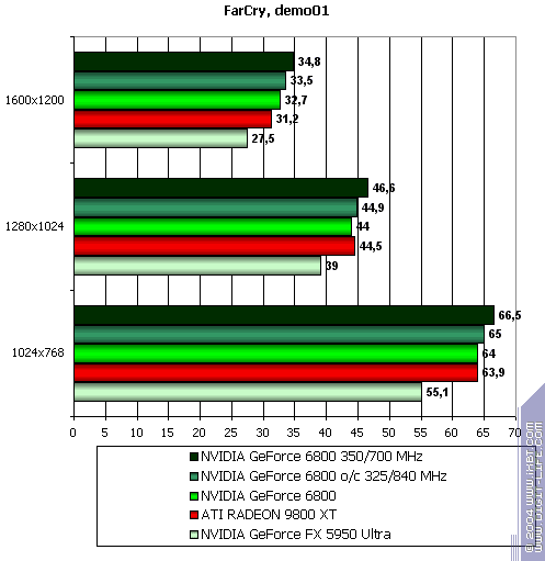 - NVIDIA GeForce 6800 против NVIDIA GeForce FX 5950 Ultra также победа, превосходство до 27%