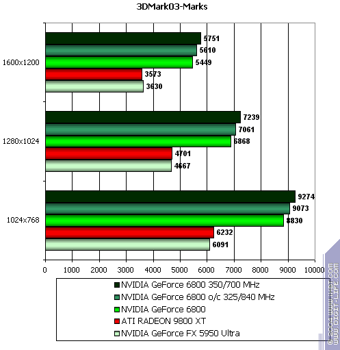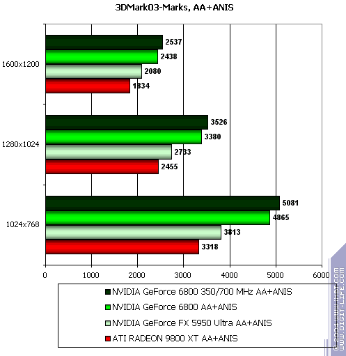 - NVIDIA GeForce 6800 против NVIDIA GeForce FX 5950 Ultra здесь все более празднично для 6800: перевес огромен!