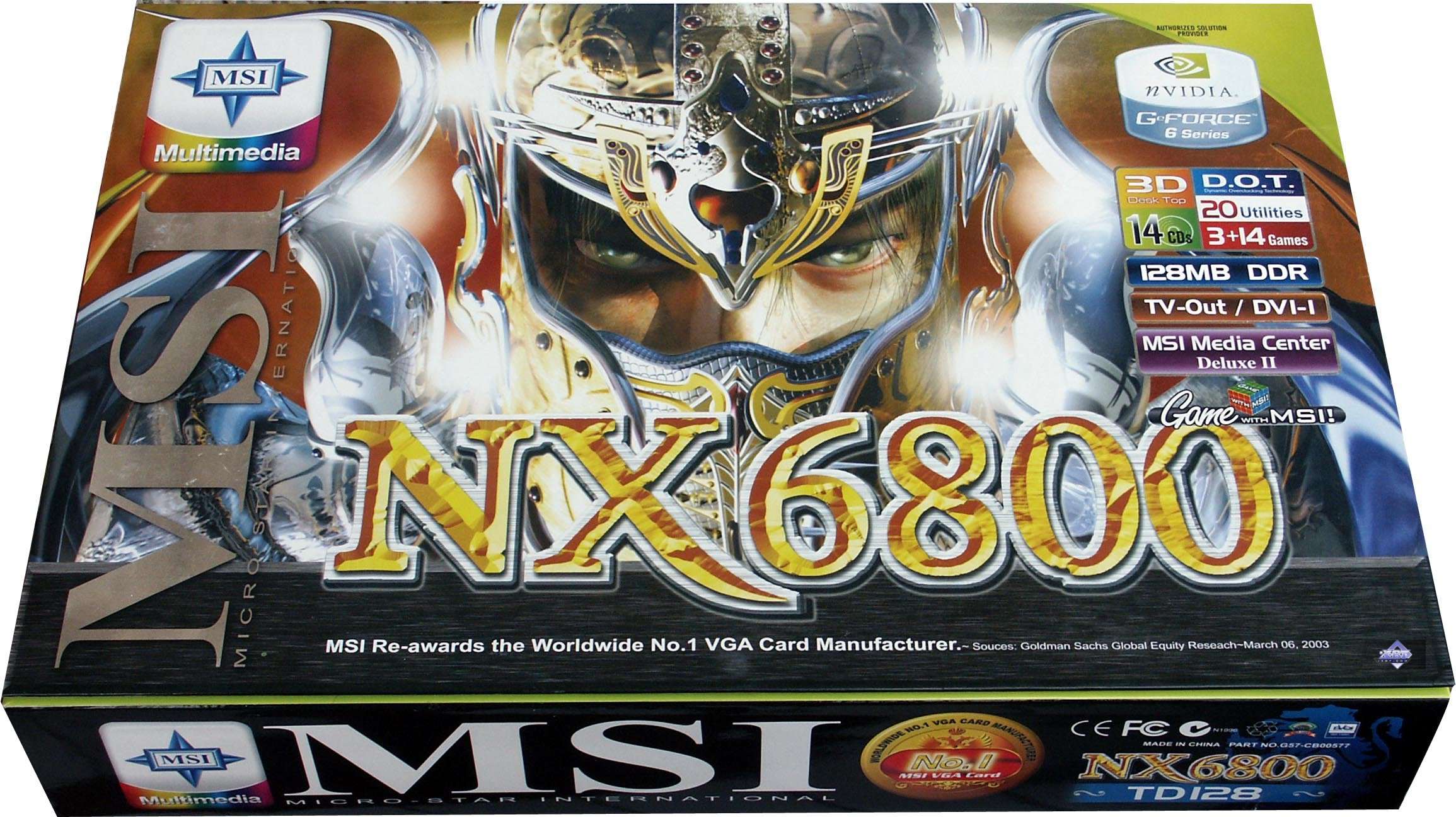 | Карты имеют интерфейс AGP x8/x4, 128 МБ памяти DDR SDRAM размещенной в 8-ми микросхемах на лицевой стороне PCB. Микросхемы памяти Hynix. Время выборки у микросхем памяти 2,8 ns, что соответствует частоте работы 350 (700) МГц, на которой память и работает. Частота работы GPU у MSI NX6800-TD128 325 MHz, а вот у Galaxy Glacier GeForce 6800 350 MHz. Шина обмена с памятью — 256 bit. Число пиксельных конвейеров — 12 (3х4). Как выяснилось позже, на самом деле у данной платы не 12, а 16 конвейеров (4х4). Мы не знаем, с какой целью компания поставила на GeForce 6800 такой чип, и будут ли все подобные карты комплектоваться 16-конвейерными GPU. | ![]() |