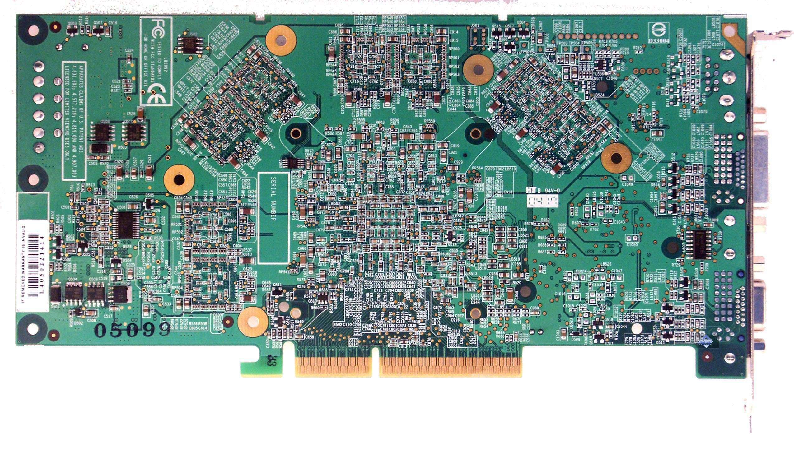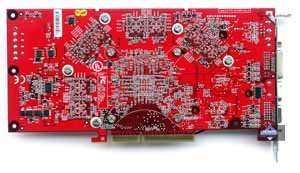 Очевидно, что оба продукта имеют одинаковый дизайн, основанный на эталонном. По сути отличия PCB только в цвете лака. Расположение микросхем памяти такое же как и у GeForce FX 5900, да и вообще дизайн очень схож. Разъем для внешнего питания один и расположен в верхней части карты. Для работы платы в составе среднего системного устройства достаточно блока питания в 300Вт. Отметим особо, что память у карты от Galaxy дает очень много потенциала для разгона и потому явно эта карта понравится оверклокерам.