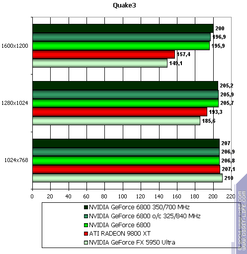Особо отмечу, что на нижеприведенных диаграммах все данные получены с «нормальных» GeForce 6800 (12 конвейеров).