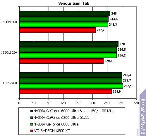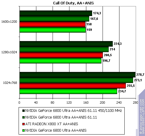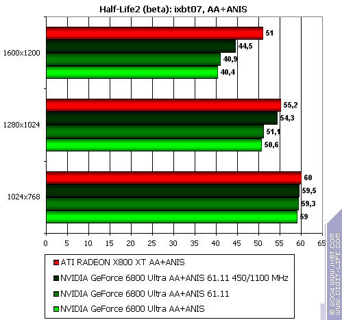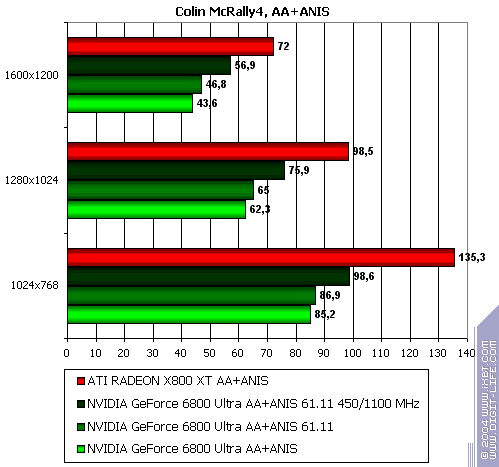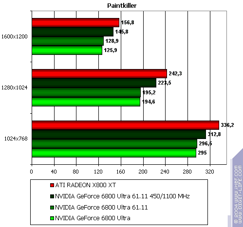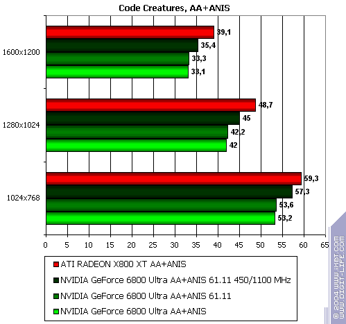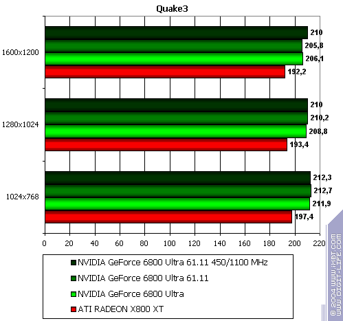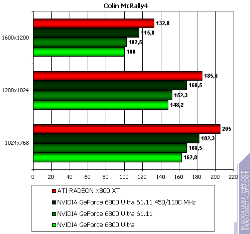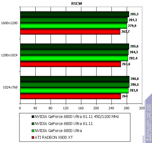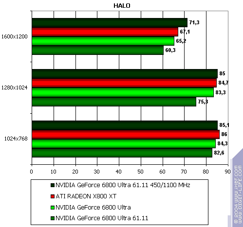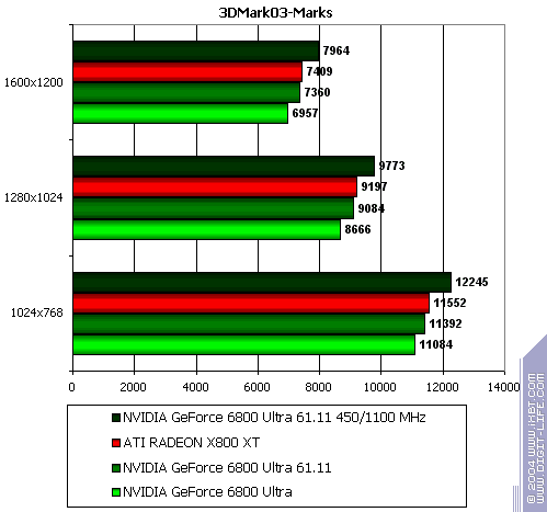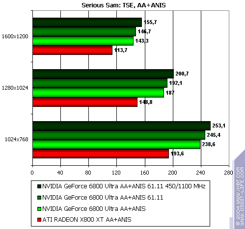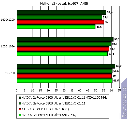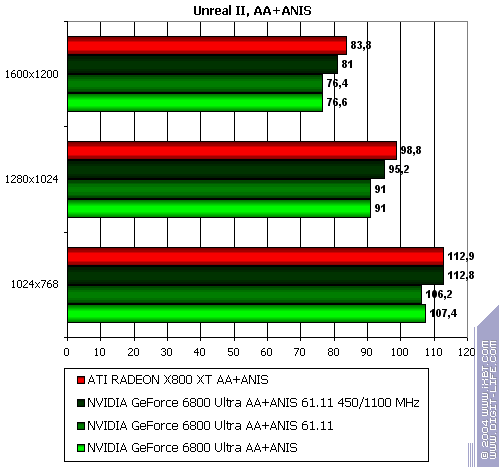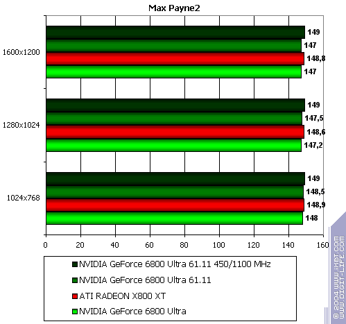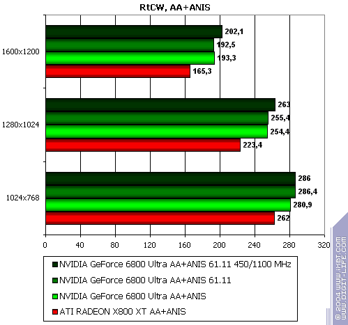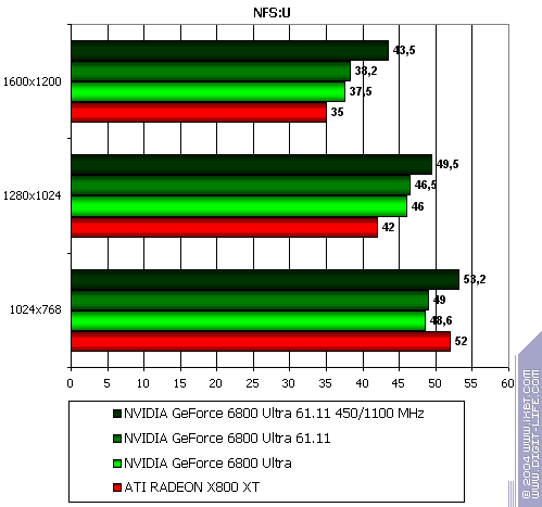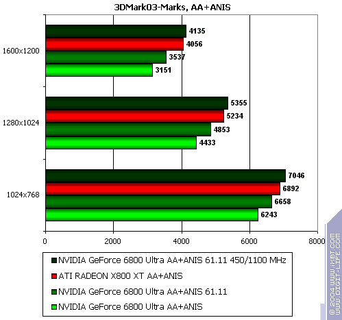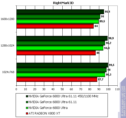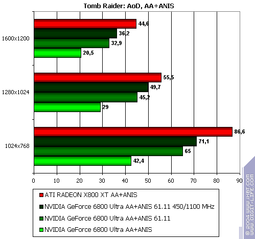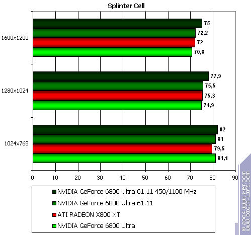 - NVIDIA GeForce 6800 Ultra 450МГц против ATI RADEON X800 XT  проигрыш, если принимать во внимание тяжелые режимы.