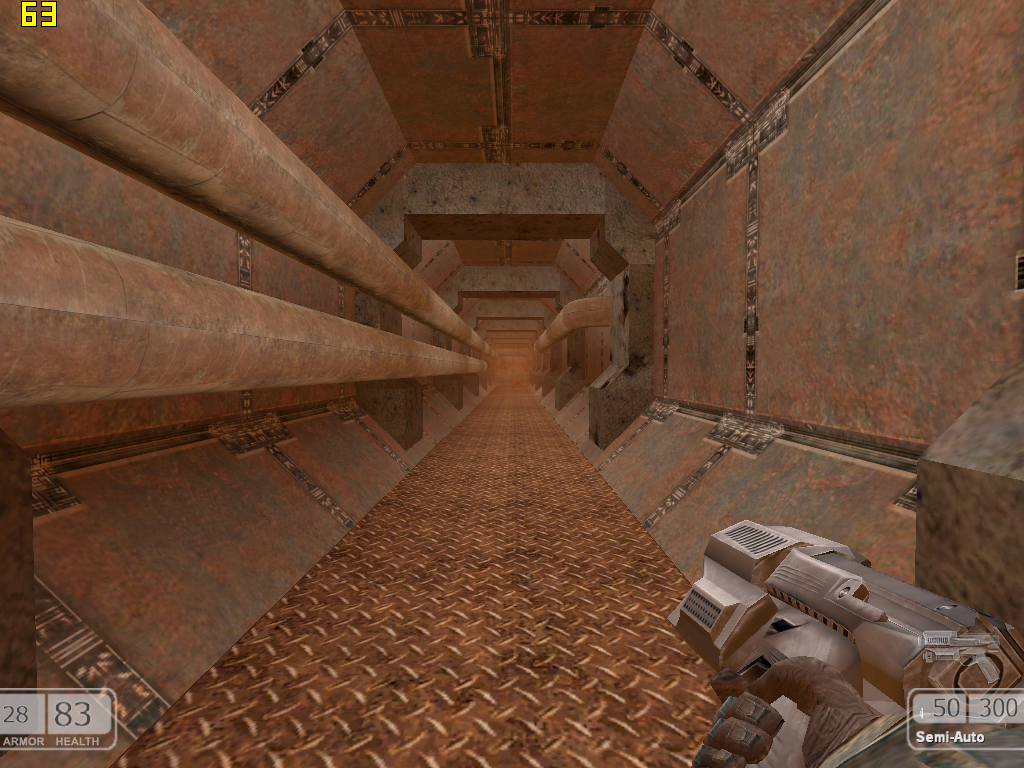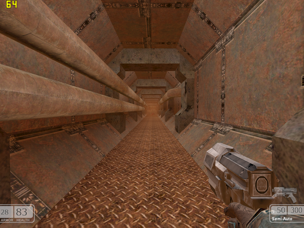 От «старичков» к относительно молодым: FPS Chaser вышел около года назад, и по одной лишь этой причине обладает существенно более детализированными текстурами. Кроме того, в Chaser постоянно встречаются длинные монотонно текстурированные плоскости, причем, не только лишь горизонтальные и вертикальные.