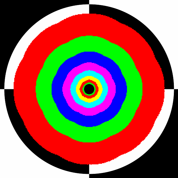 Однако прежде чем приступать к рассмотрению текстурной фильтрации непосредственно в играх, мы решили сделать несколько нестандартных для данного материала скриншотов из широко известной тестовой программы D3D AF Tester. Нам интересен режим текстурированного круглого туннеля, ось которого перпендикулярна плоскости экрана и находится строго в центре окна программы — подобная сцена не участвовала в синтетических тестах фильтраций при помощи пакета D3D RightMark.