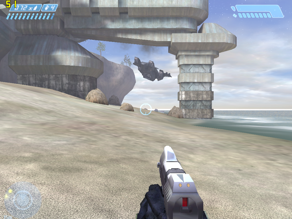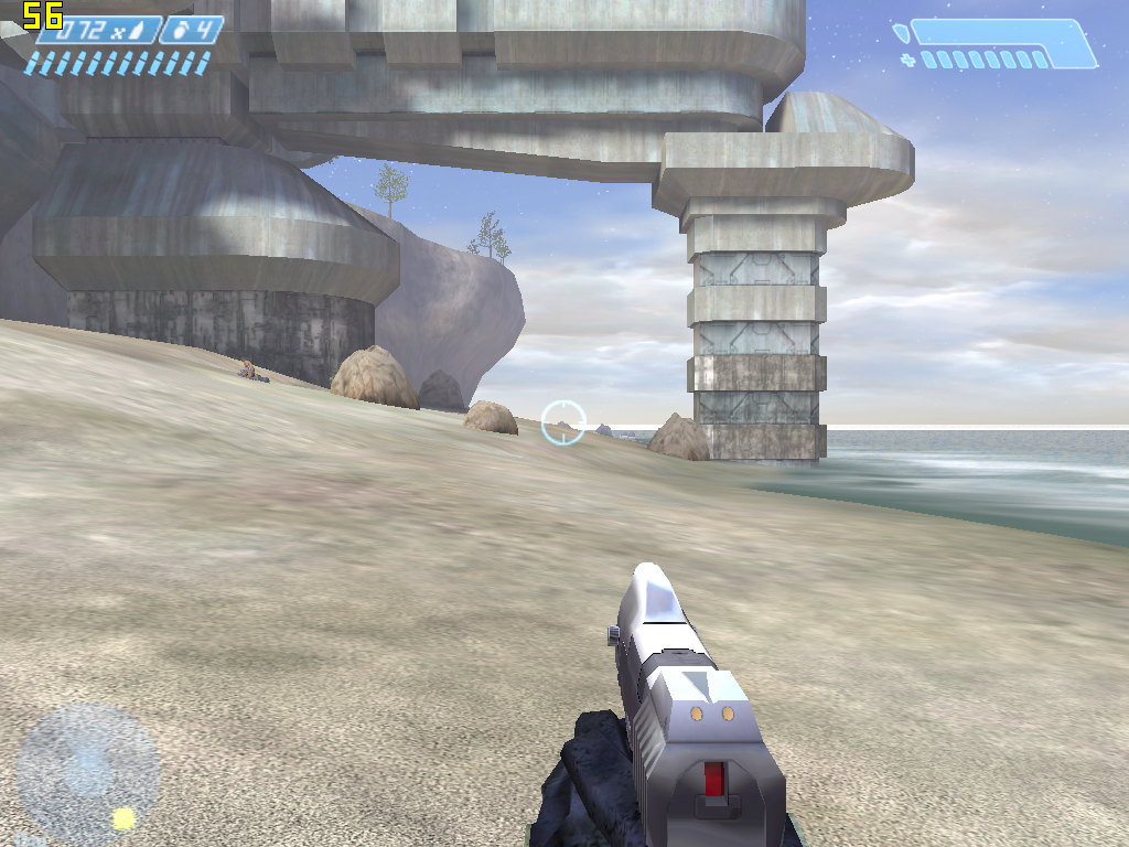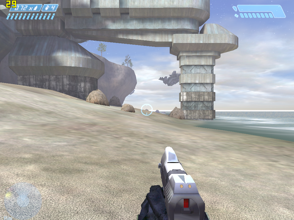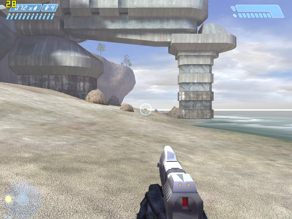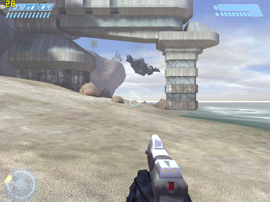 Хэдлайнер приставки Microsoft Xbox появился на ПК осенью прошлого года. Игра обладает достаточно странной графикой, сочетающей относительно простые приставочные текстуры с достаточно сложными спецэффектами, часть которых реализуется при помощи пиксельных шейдеров. Формально игра поддерживает все версии пиксельных шейдеров (кроме, разумеется, версии 3.0, поддержка которой в железе появилась лишь после выпуска GF6800), однако версии 1.4 и 2.0/2.0.a используются игрой лишь как суперсеты версии 1.3, поддерживаемой приставкой Xbox. По замыслу компании Gearbox, выполнявшей портирование игры на ПК, применение шейдеров более новых версий для отображения тех же спецэффектов должно было повысить скорость работы игры, однако на практике игра работает практически одинаково на всех версиях пиксельных шейдеров (форсирование той или иной версии можно задавать через параметры при запуске Halo из командной строки).