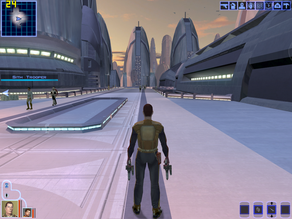 Последней игрой в сегодняшнем тестировании стала вышедшая на ПК полгода назад приставочная RPG Star Wars Knights of the Old Republic. Игра использует OpenGL и обладает собственными настройками анизотропной фильтрации, позволяющими выставить любой из поддерживаемых видеочипом уровней анизотропии. Возможность отключения мип-фильтрации (т.е., включения билинейной фильтрации текстур) отсутствует, игра всегда пытается использовать трилинейную фильтрацию, если она поддерживается видеочипом.