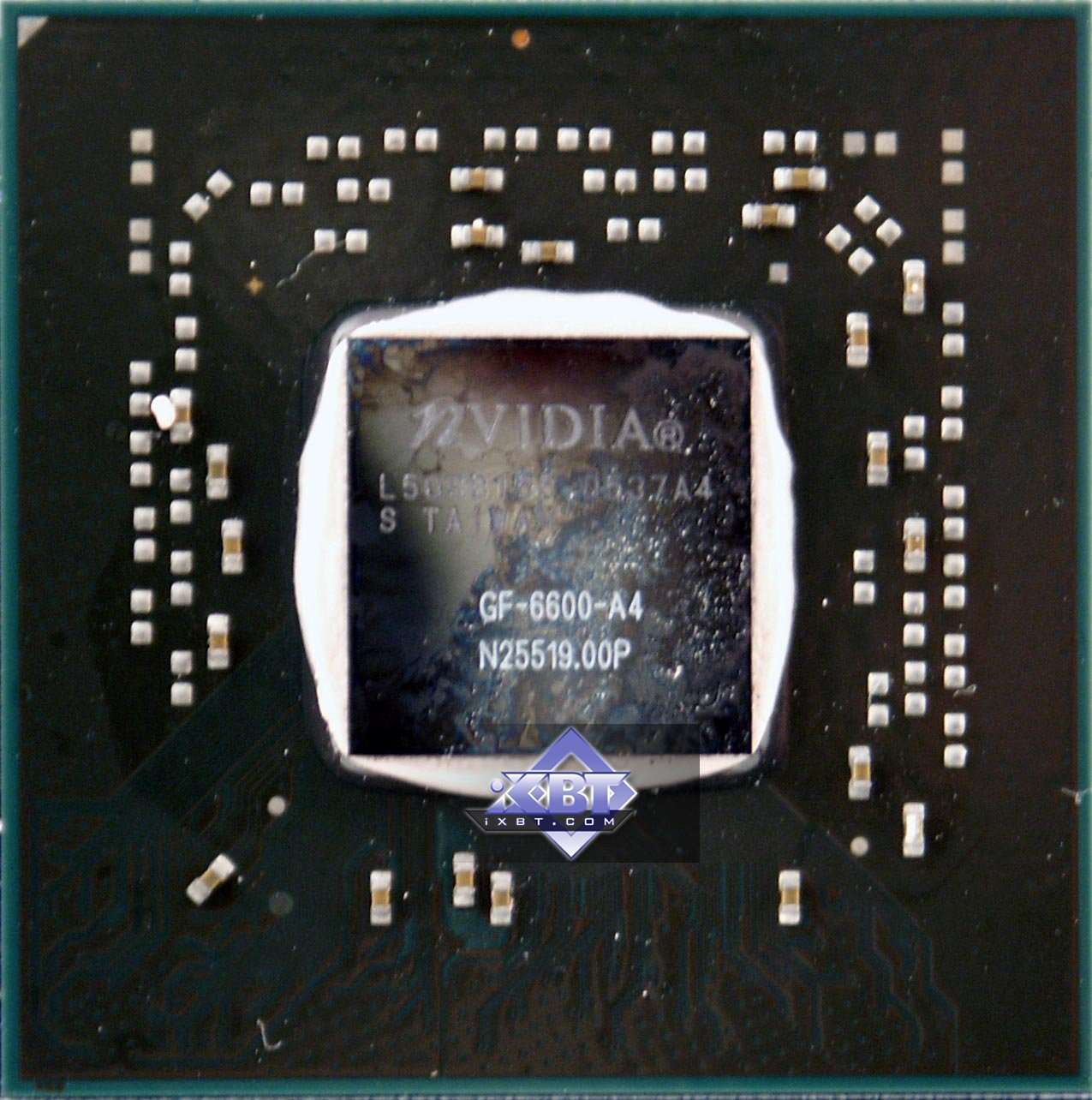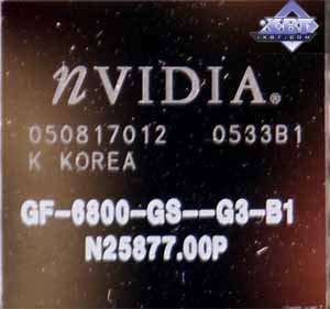 То же самое относится и к GeForce 6800 GS. Интересно отметить, что, судя по маркировке, процессор выпущен на 33-й неделе 2005 года, то есть в сентябре (совсем недавно). И маркировка уже стоит GS. А не просто GeForce 6800. Мы помним, что ранее наименования наклеивались на подложку, но здесь явно маркировка нанесена только на кристалл. Скорее всего, это не ранее выпущенный NV42 для 6800 и просто отобранный и перемаркированный, а заново выпущенный специально для GS.