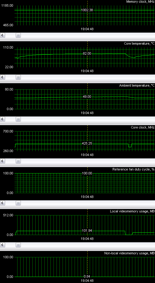 Как мы видим, температурный фон не выходит за пределы разумного (при эксплуатации в условиях закрытого корпуса и без дополнительного обдува карты).