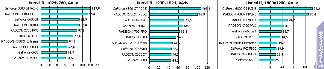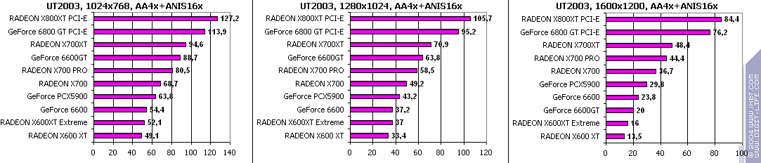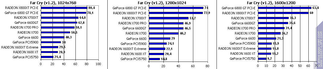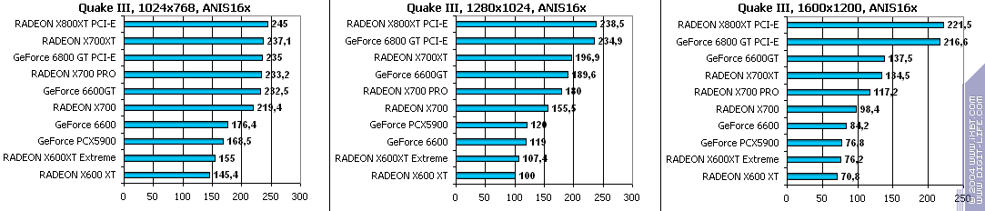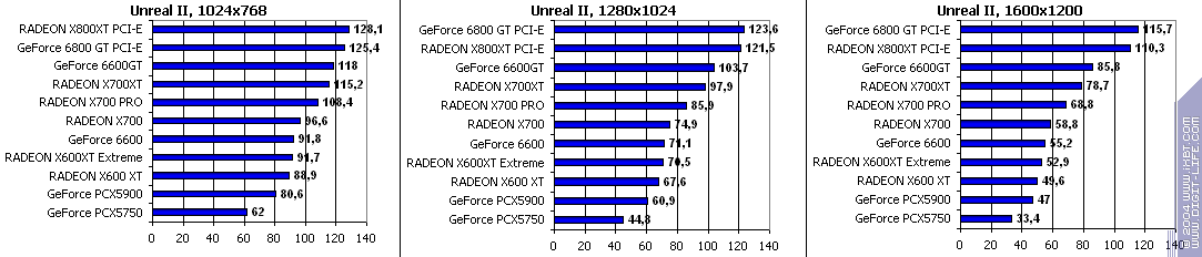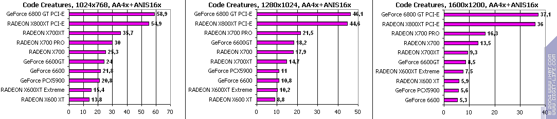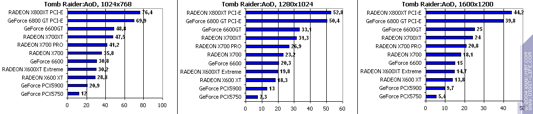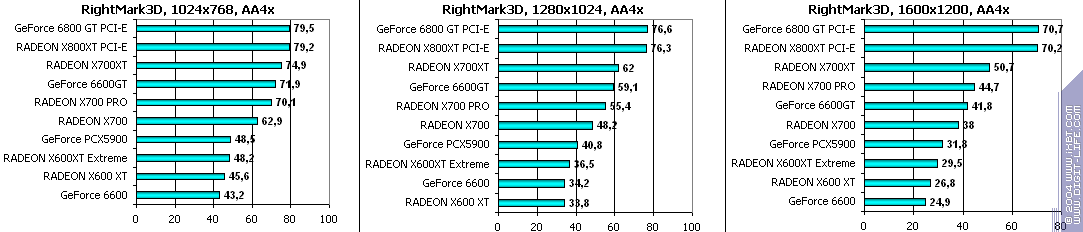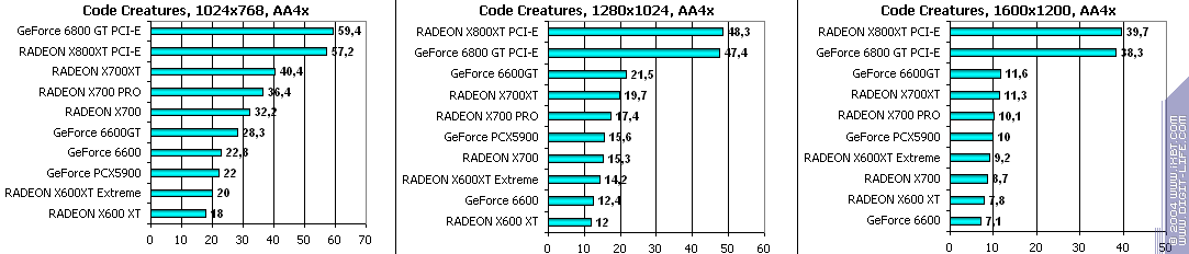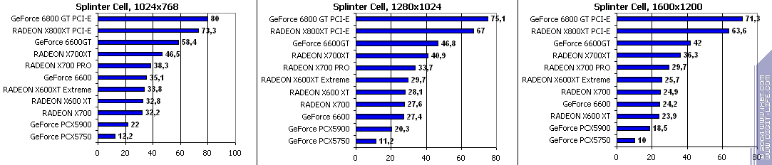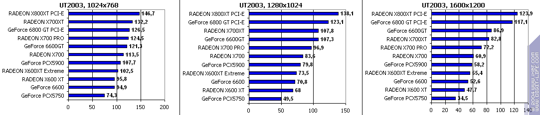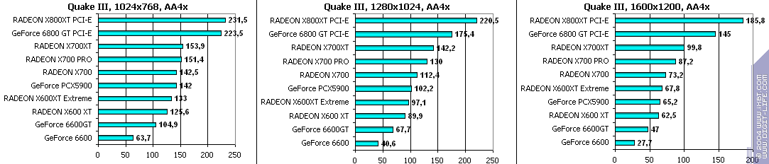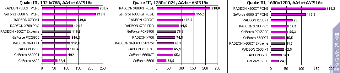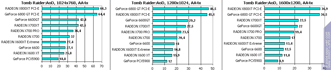 Все аналогично. Даже нет смысла рассматривать подробно. GeForce 6600 не тянет против X700!
