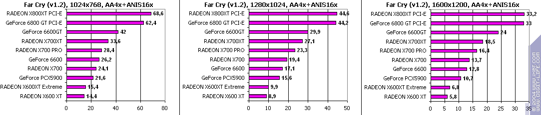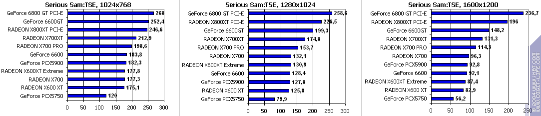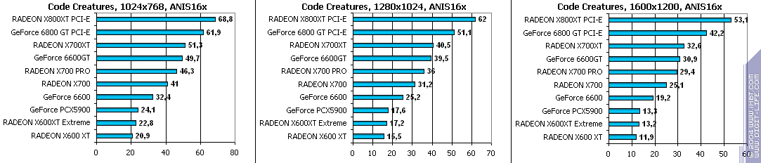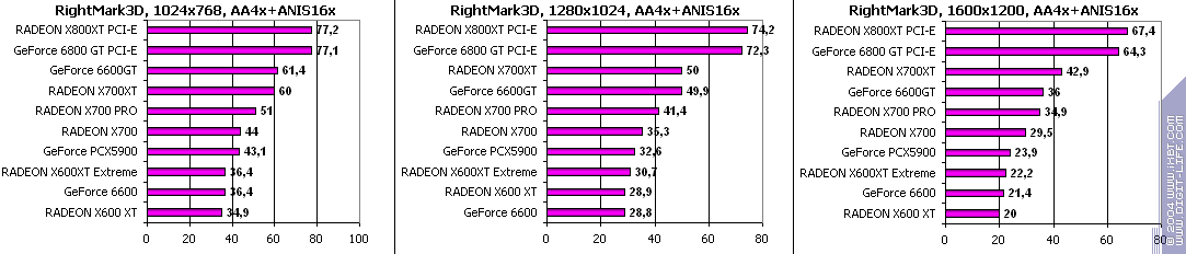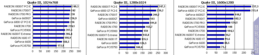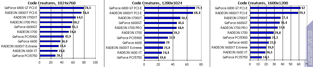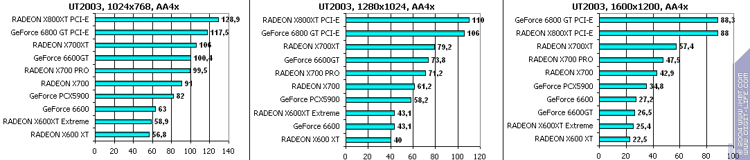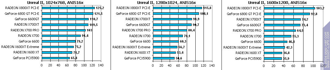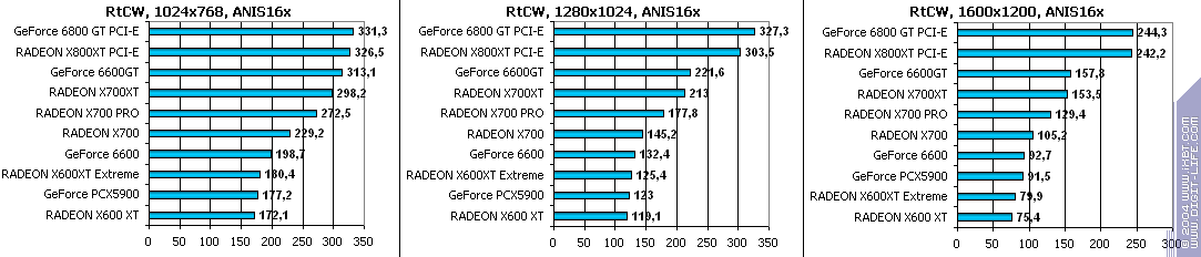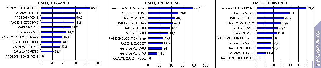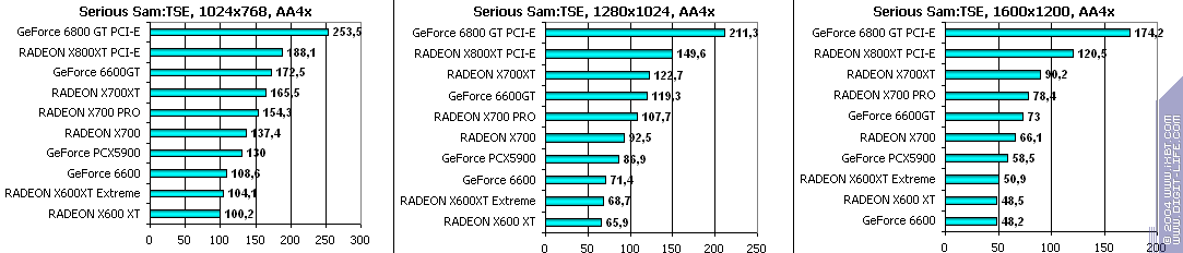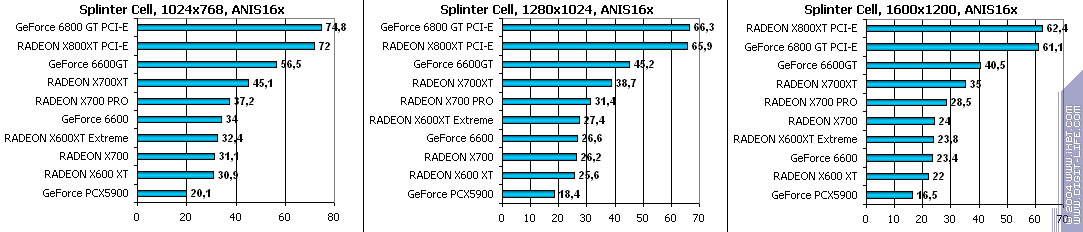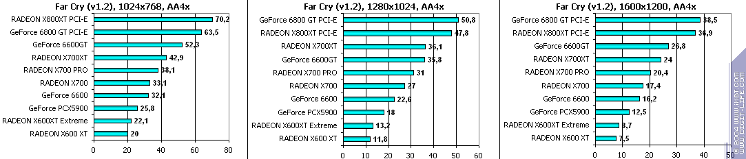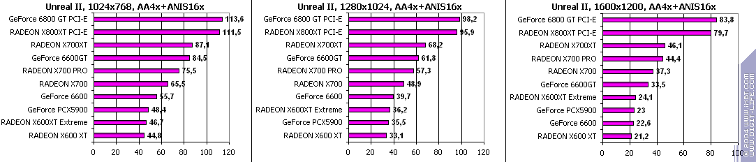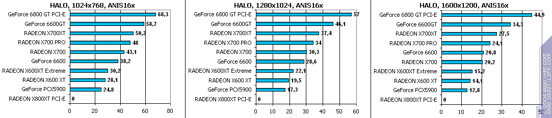 Все аналогично. Даже нет смысла рассматривать подробно. GeForce 6600 не тянет против X700!