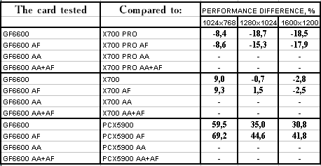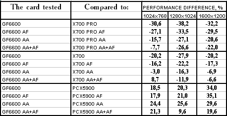 - GeForce 6600 — против RADEON X700 PRO поражение.