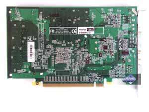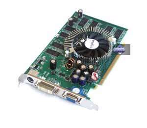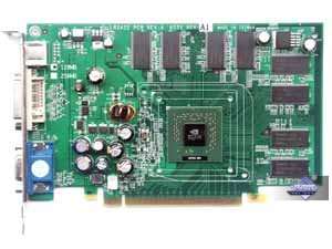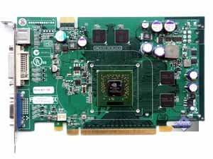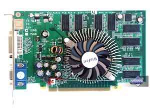| Карты имеют интерфейс PCI-Express 16x, 128 МБ памяти DDR SDRAM, размещенной в 8-ми микросхемах на лицевой стороне PCB. Микросхемы памяти Hynix. Время выборки у микросхем памяти 3.6 ns, что соответствует частоте работы 275 (550) МГц, на которой память и работает. Частота работы GPU 300 MHz. Шина обмена с памятью — 128 bit. 8 пиксельных конвейеров и 3 вершинных. | ![]() |