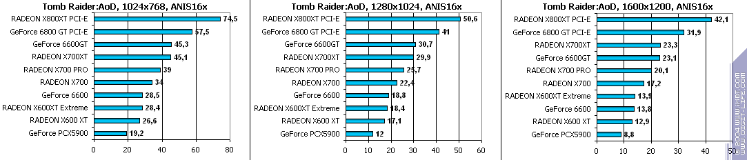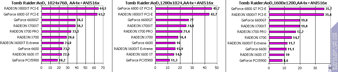 - Tomb Raider: Angel of Darkness v.49 (Core Design/Eldos Software) DirectX 9.0, Paris5_4 demo. Тестирование проводилось при максимально установленном качестве, выключены были лишь Depth of Fields PS20.