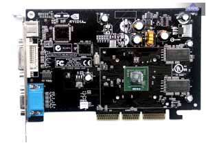 Маркировка чипа недвусмысленно говорит, что это 6200 AGP. Еще раз напоминаю, что все 6200 AGP — с 64-битной шиной, поскольку все 6200 со 128-битной шиной и для AGP-сегмента, имеют встроенный PCI-E интерфейс, и карты снабжаются мостами HSI.