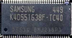 | Карта имеет 128 МБ памяти DDR SDRAM, размещенной в 4-х микросхемах на лицевой и оборотной сторонах PCB. Микросхемы памяти Samsung. Время выборки у микросхем памяти 4.0 ns, что соответствует частоте работы 250 (500) МГц. | ![]() |