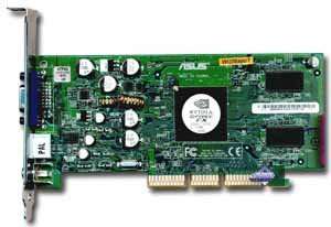 | ASUS V6600 32MB SDR 128bit, 120/166 MHz (4 пиксельных конвейера по 1-му текстурному блоку на каждом, при мультитекстурировании — 2 конвейера с 2-мя текстурниками, имеется блок аппаратной обработки геометрии и освещения) |  |