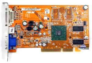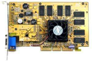| ATI RADEON 32MB SDR 128bit, 166/166 MHz (2 пиксельных конвейера с 3-мя текстурными блоками на каждом, имеется блок аппаратной обработки геометрии и освещения) |  |