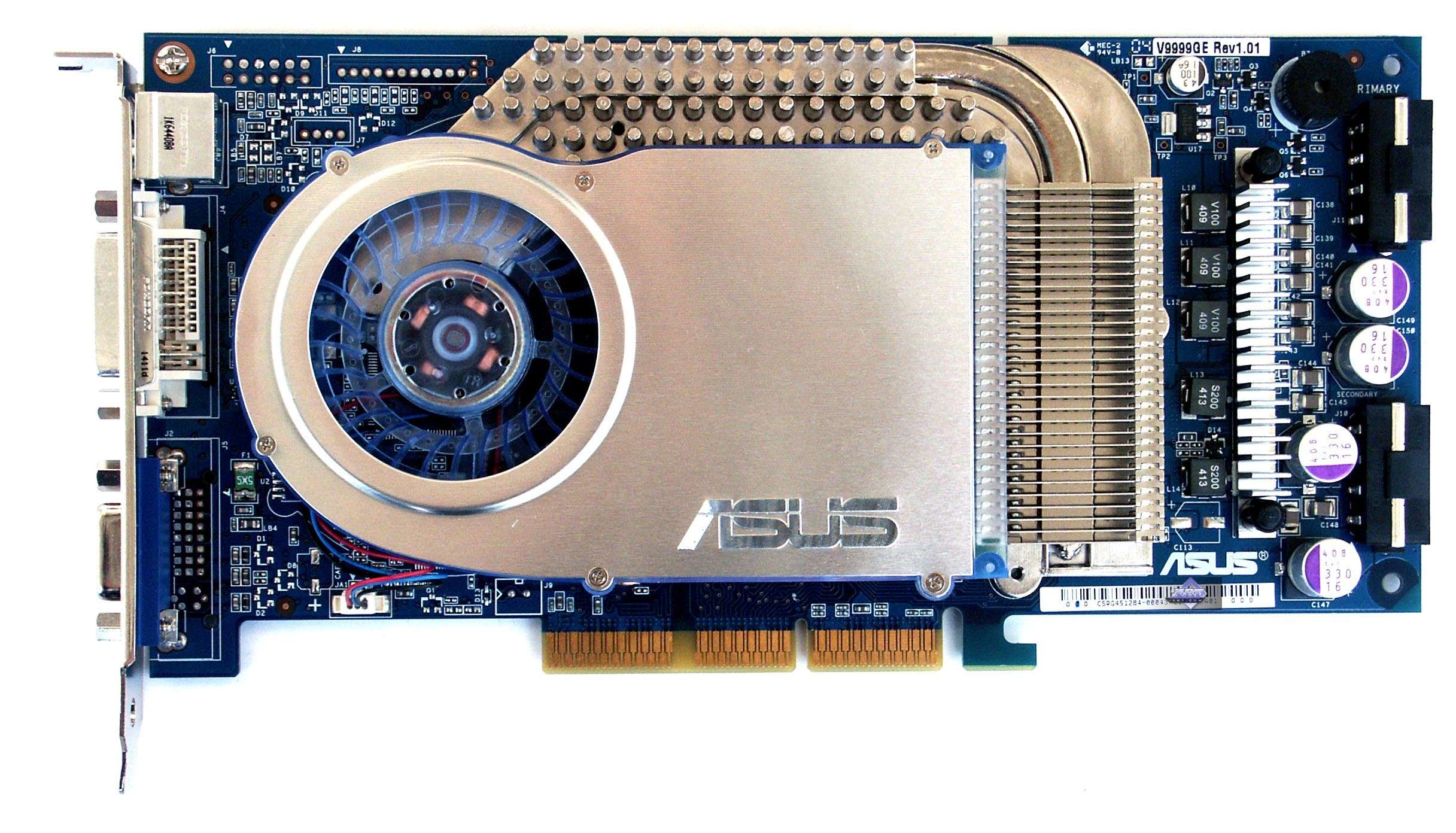 | ASUS V9999 Gamer Edition 256MB GDDR3 256bit, 350/500 (1000) MHz (12 пиксельных конвейеров с 1-им текстурным блоком на каждом, до 16 текстур за проход, до 24 отсчетов Z, поддержка DirectX 9.0c, шейдерная модель версии 3.0, блок аппаратной обработки геометрии и освещения базируется на пяти вершинных конвейерах) |  |