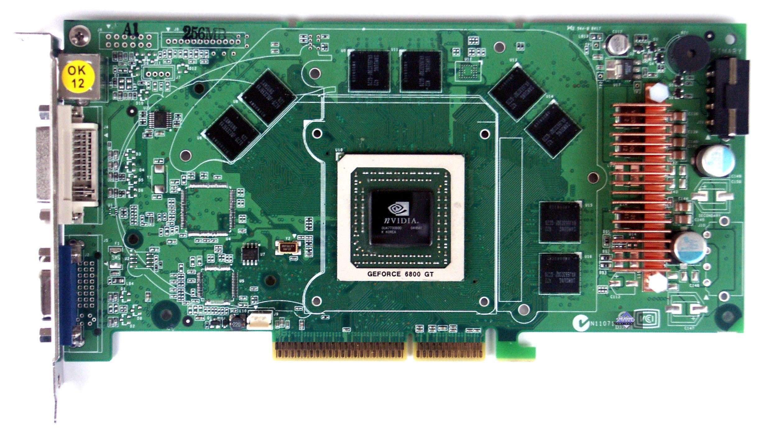 | Palit GeForce 6800 128MB 256bit, 325/350 (700) MHz (12 пиксельных конвейеров с 1-им текстурным блоком на каждом, до 16 текстур за проход, до 24 отсчетов Z, поддержка DirectX 9.0c, шейдерная модель версии 3.0, блок аппаратной обработки геометрии и освещения базируется на пяти вершинных конвейерах) |  |
