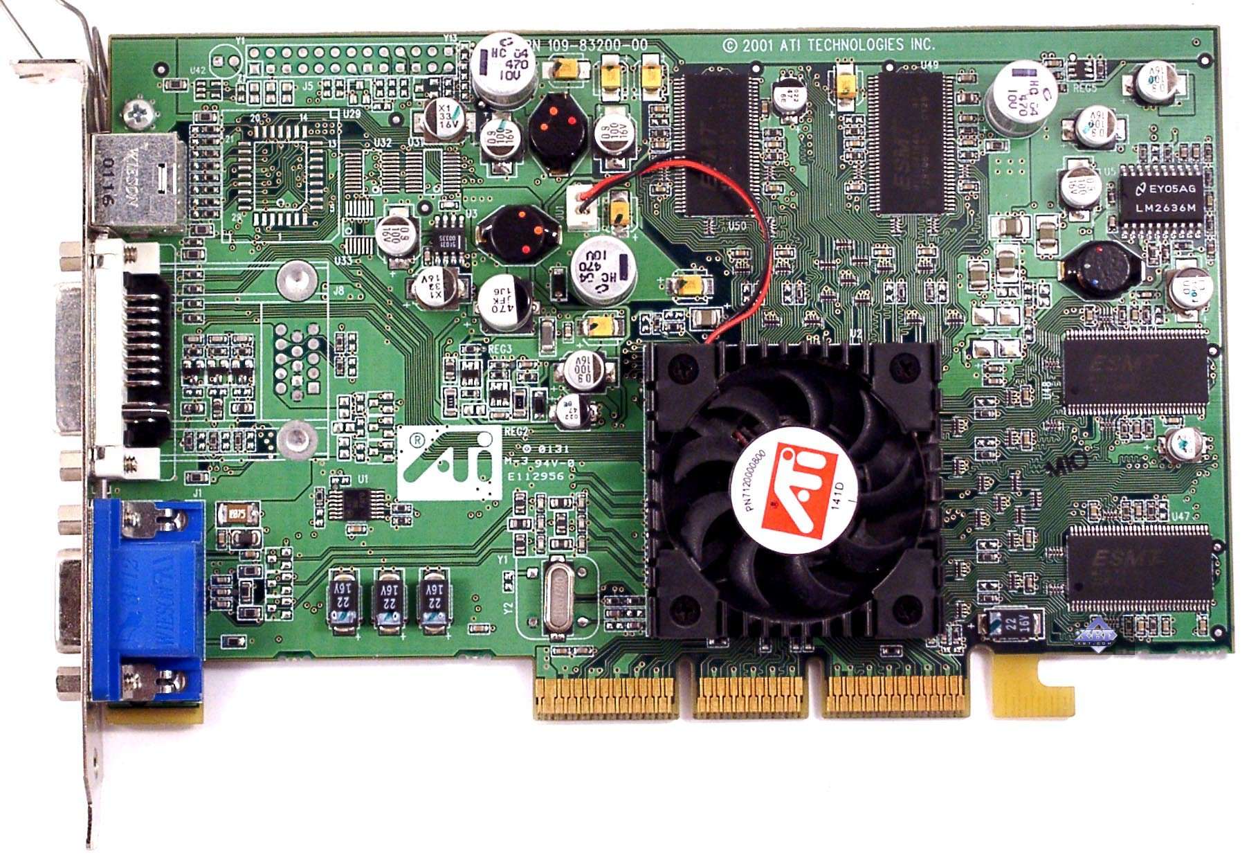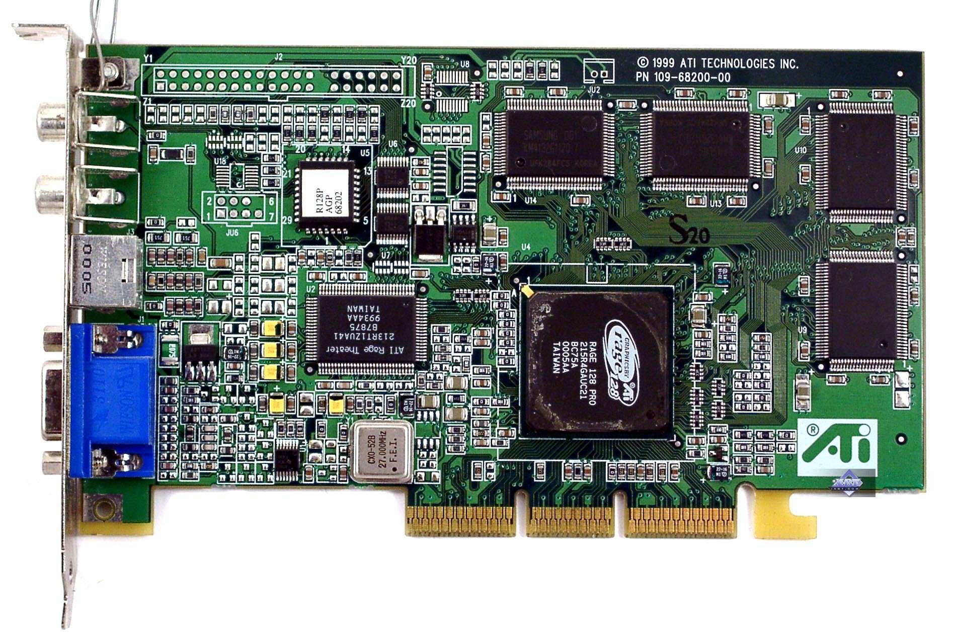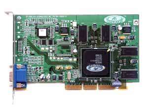 | ATI RAGE 128 PRO 32MB SDR 128bit, 118/143 MHz (2 пиксельных конвейера по 1-му текстурному блоку на каждом, при мультитекстурировании — 1 конвейер с 2-мя текстурниками, возможностей аппаратной обработки геометрии и освещения нет) |  |
